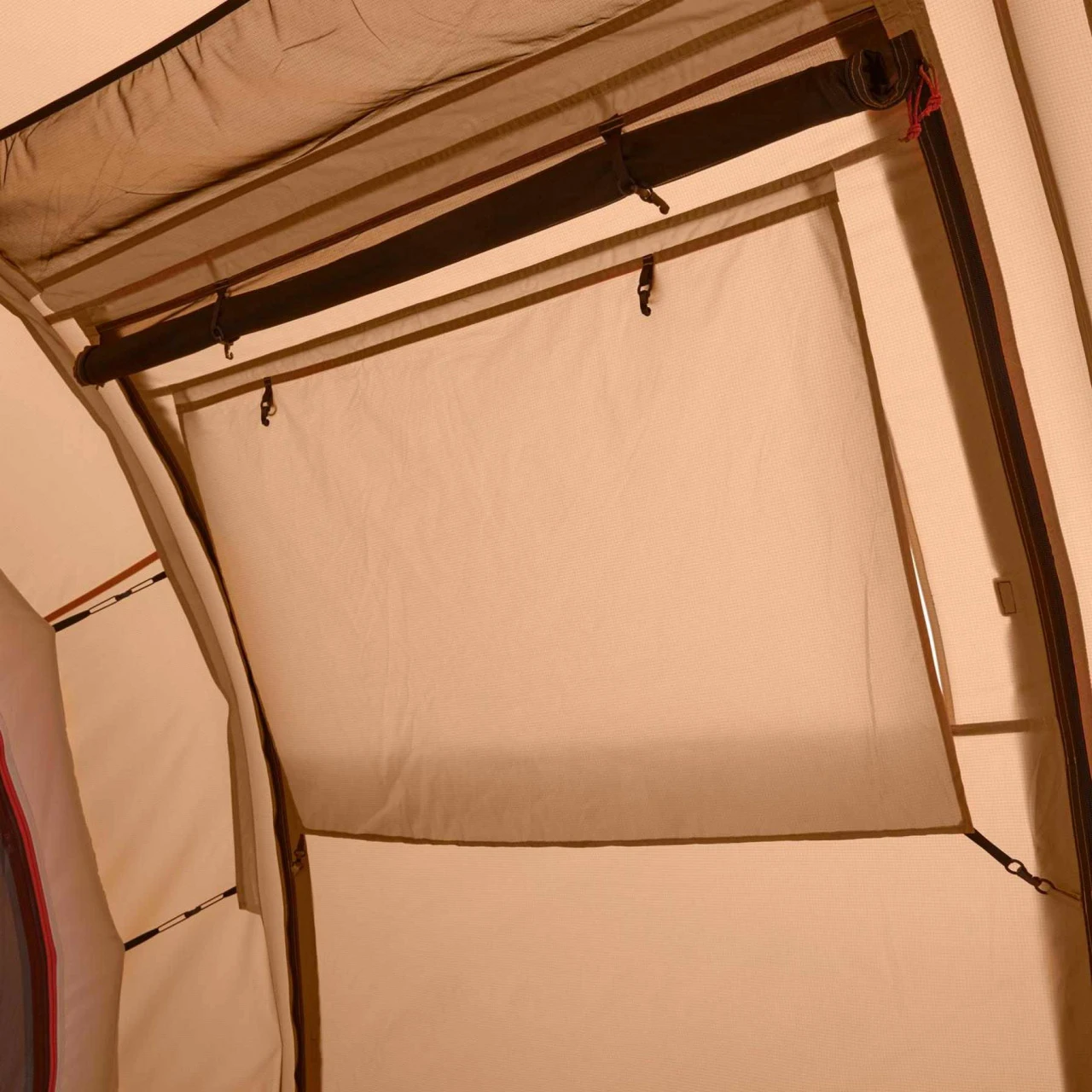 Das Nordisk Reisa 6 PU Familienzelt eignet sich hervorragend für einen Familienurlaub zu sechst. In das Innere des Zeltes gelangst Du durch eine der beiden Türen. Die Türen können komplett geöffnet und als Sonnendach aufgestellt werden. Außerdem bestehen die Türen aus zwei Schichten mit No-See-Um-Netz und Fenstern mit integrierten Rollvorhängen. Somit ist Dein Zelt schön lichtdurchflutet und hat ein angenehmes Zeltklima. Bei Bedarf können die Fenster für mehr Privatsphäre verschlossen werden. Im Inneren des Zeltes befinden sich zwei Schlafkabinen, die mit eingenähten Bodenwannen versehen sind, sodass in Deiner Schlafumgebung ein angenehmes Klima herrscht. Die größere Schlafkabine kann bei Bedarf noch einmal in zwei geteilt werden. Die kleinere Schlafkabine kann bei Bedarf abgetrennt und als zusätzlicher Stauraum oder Apsis verwendet werden. Zu den weiteren Ausstattungsmerkmalen des Reisa 6 PU gehören unter anderem mehrere Aufbewahrungstaschen und Haken im Zelt, um dieses ein wenig wohnlicher zu machen, zusätzliches Gestänge, um das Sonnendach zu fixieren und Deckeltaschen für schnelles Verstauen der Windfangtüren. Platz für Dein Gepäck oder Deine Schuhe hält der hohe Zwischenraum bereit, der die beiden Schlafkabinen voneinander trennt. Kleinigkeiten oder besonders wichtige Ausrüstungsteile sind somit in Deiner Nähe!