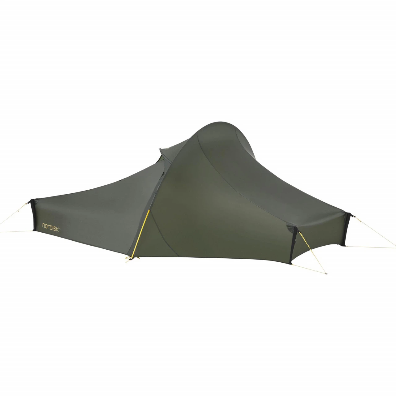 Das kompakte Nordisk Telemark 1 LW Trekkingzelt ist ein robustes Rucksackzelt, indem 1 Person problemlos Platz findet. Es besticht mit seinem geringen Gewicht und lässt sich schnell und einfach aufbauen. In das Innere des Zeltes gelangst Du durch die Seitentür. Diese lässt sich mit dem Reißverschluss öffnen und kann mit den magnetischen Türverschlüssen geschlossen werden. Die kleine Apsis bietet Dir die Möglichkeit Dein Equipment zu verstauen. Im Inneren des Telemark 1 LW hast Du Seitentaschen, in denen Du persönliche Gegenstände verstauen kannst und Lampenaufhängepunkte um dort eine Lampe zu befestigen. Also zusätzliches Feature kannst Du die Außentür mit drei Eckgestängen und der vorhandenen Abspannleine zu einem Sonnendach verwandeln.