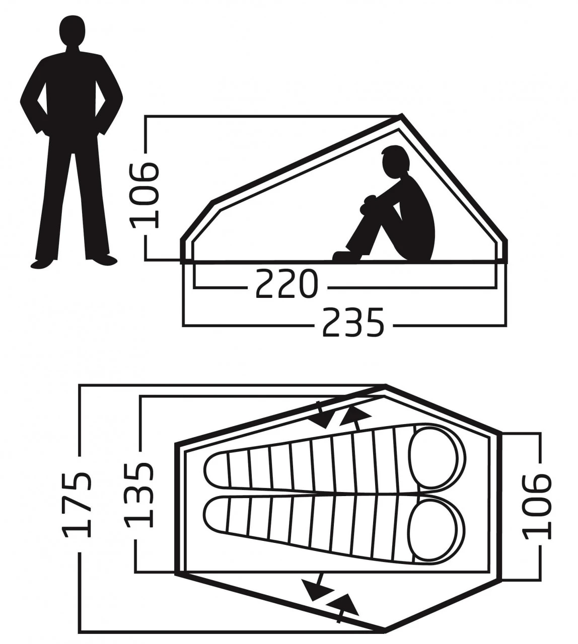 Das 2-Personen Nordisk Telemark 2.2 PU Tekkingzelt besticht besonders durch sein geringes Gewicht, sein kleines Packmaß und seine hohe Strapazierfähigkeit. Darüber hinaus ist die Tunnelzeltkonstruktion aus dem neuen Rip-Stop-Gewebe für extra hohe Reißfestigkeit gefertigt worden. In das Innere des Zeltes gelangst Du durch einen der beiden Eingänge. Dadurch, dass das Telemark 2.2 PU zwei Eingänge hat, kann jeder der Camper beliebig ein- und ausgehen, ohne den anderen zu stören. Die beiden äußeren Türen können außerdem in ein Vordach verwandelt werden. Die Apsis bietet Dir zusätzlichen Platz für Dein Gepäck oder für eine Kochstelle. Außerdem verfügt das Zelt über eine großartige Belüftung, die für ein gutes Raumklima sorgt.