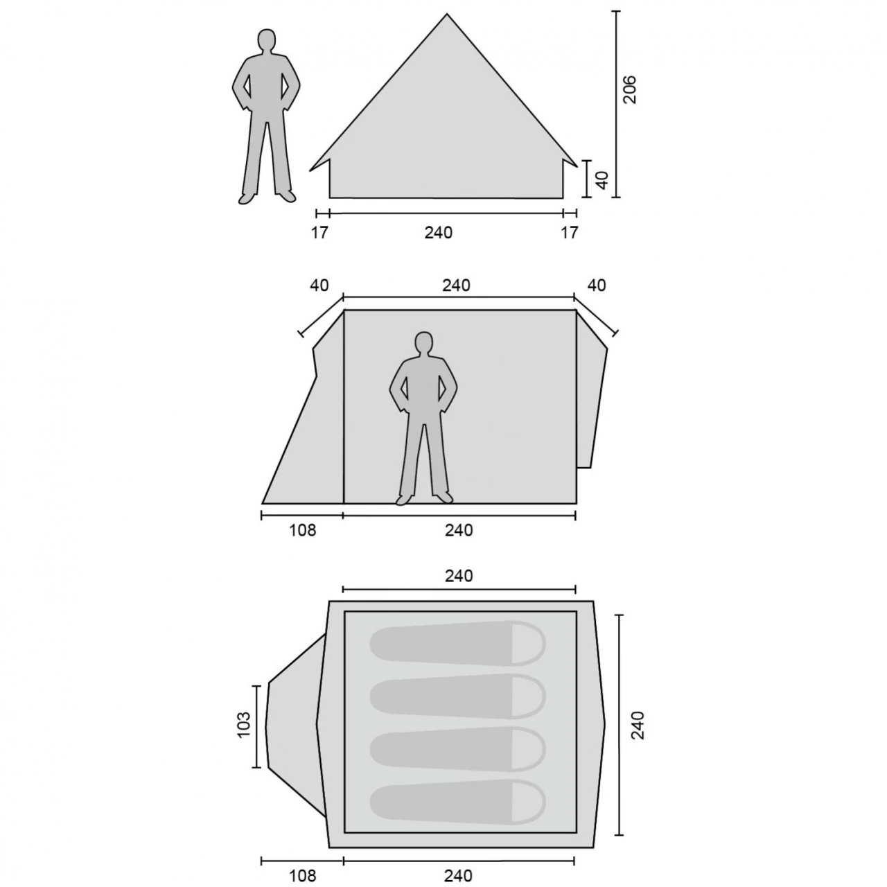Das Nordisk Vimur 5.6 Familienzelt ist ein 4-Personenzelt, welches einen großen Schlaf-/Wohnbereich hat und sich besonders leicht aufbauen lässt. Es besteht aus einem Baumwoll-Mischgewebe und hat eine hervorragende Belüftung und ein angenehmes Raumklima. In das Innere des Zeltes gelangst Du durch eine der beiden mit Mesh ausgestatteten Türen. Der Mesh-Einsatz dient gleichzeitig als Moskitoschutz und hilft Dir so Insekten aus dem Zelt fernzuhalten. Durch die beiden Türen und zwei Fenster fällt viel Licht in das geräumige Zelt. Außerdem sorgen die Zugänge zum Zelt für eine gute Luftzirkulation im Innenbereich. Darüber hinaus verfügt die Tür über eine versteckte Erweiterung, die entfaltet, zu einer zusätzlichen Apsis wird. Zu den weiteren Ausstattungsmerkmalen des Vimur 5.6 gehören mehrere Taschen im Innenbereich in denen Du deine Wertsachen, Zeitschriften, Smartphone oder Ähnliches verstauen kannst, eine Stehhöhe in der Mitte von 3 Metern und eine eingenähte Bodenwanne. Durch die A-förmige Stangenkonstruktion ohne störende Mittelstange entsteht eine „stangenfreie“ Optik. Zusätzlich lässt sich das Vimur 5.6 mit der Midgard-Serie in der Größe und Fläche erweitern.