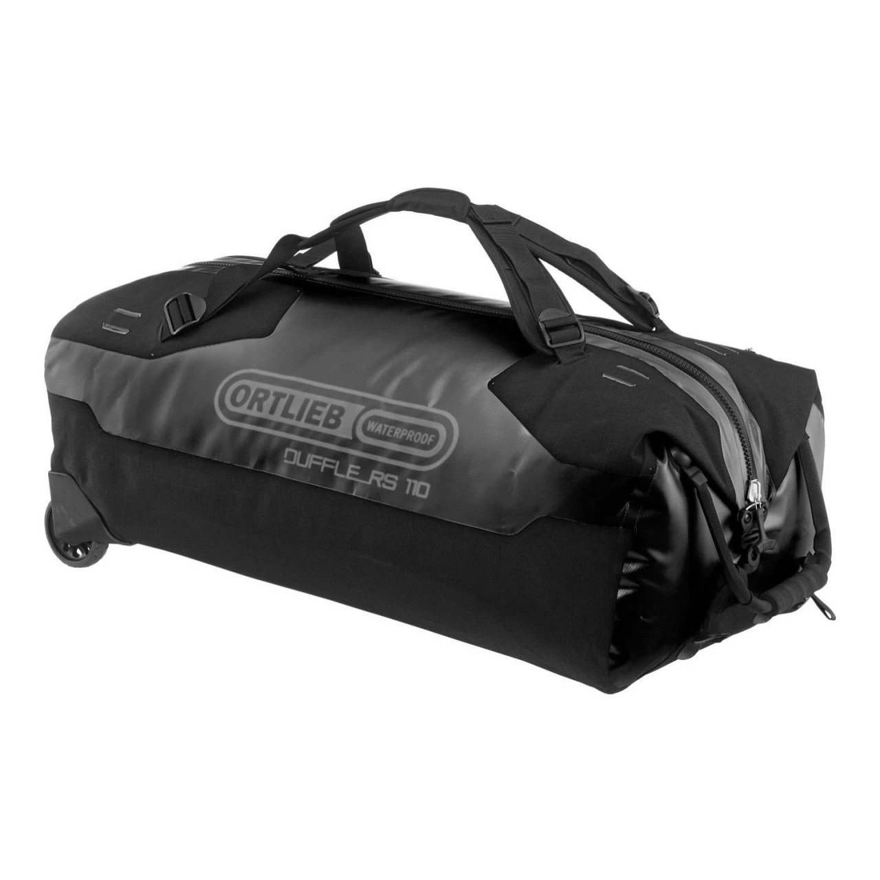 Die ORTLIEB Duffle RS 110 verbindet hohen Reisekomfort mit den extremen Ansprüchen an Expeditionstaschen. Das Rollensystem ist wasserdicht in den Taschenkörper integriert. Die Rollen mit 10 cm Durchmesser bieten zusammen mit der versteiften Bodenplatte aus profiliertem Aluminium optimale Bodenfreiheit – ideal abseits befestigter Wege. Da leichtgewichtiges Gepäck insbesondere bei Flugreisen eine wichtige Rolle spielt, wurde bewusst auf ein schweres Teleskopgestänge verzichtet. Stattdessen kommt ein längenverstellbarer Griff zum Einsatz, der komfortables Hinterherziehen mit hoher Beinfreiheit garantiert.