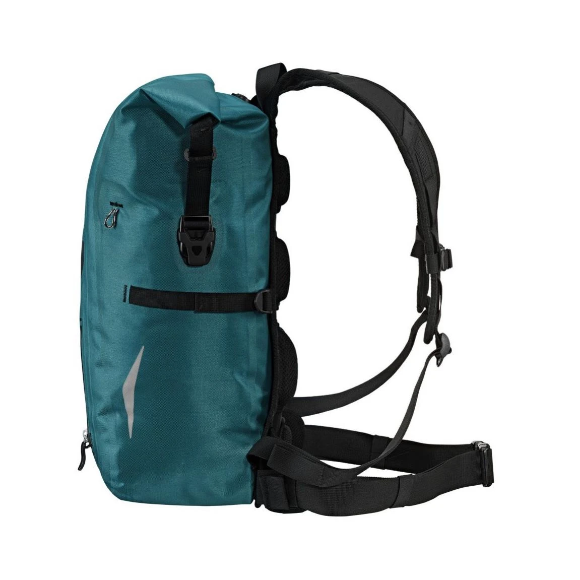 Der Ortlieb Packman Pro Two Tagesrucksack ist wasserdicht und mit einem Rollverschluss ausgestattet. Bei schlechtem Wetter bietet er optimalen Schutz für dein Equipment. Für einen angenehmen Tragekomfort sorgen unter anderem die ergonomischen Träger mit Reflexstreifen, der Brustgurt und der gepolsterte Hüftgurt und das atmungsaktive Rückensystem. Für einen leichten Transport besitzt der Rucksack einen Tragegriff. Des Weiteren besitzt der Packman Pro Two eine elastische Neopren-Fronttasche mit Reißverschluss und ein Organizerfach in der Innentasche, mit dem du deine Ausrüstung optimal ordnen kannst. Außerdem besitzt die Tasche eine verstaubare Helmhalterung.