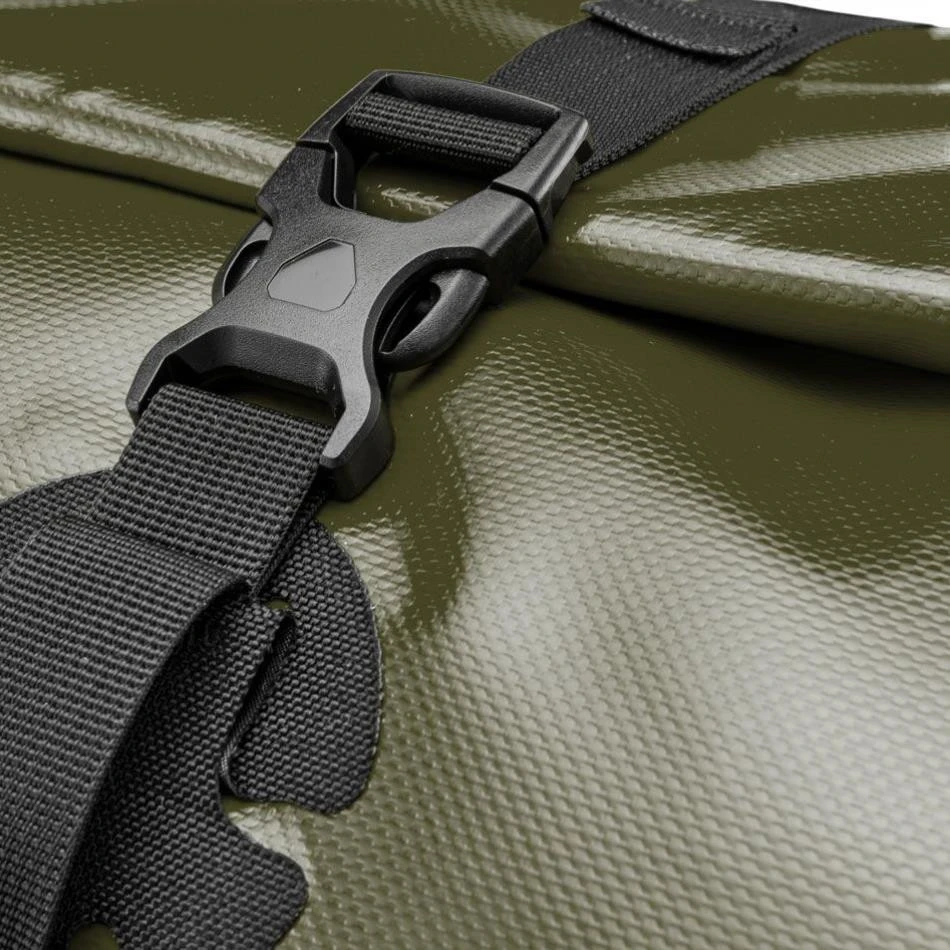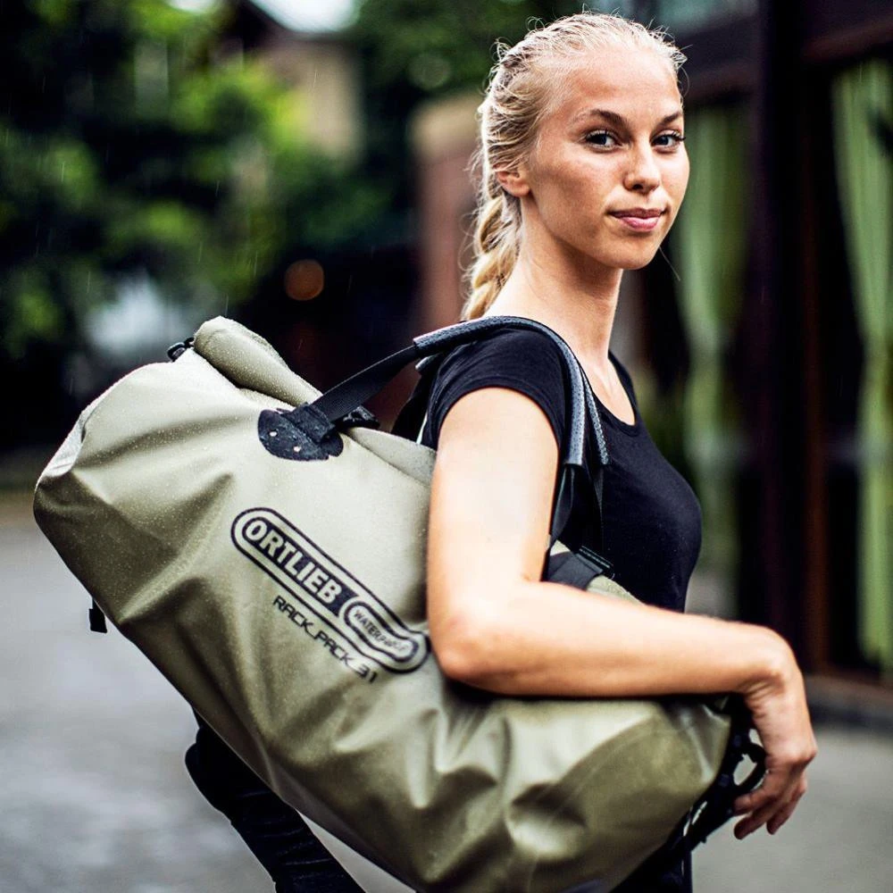 Die Ortlieb Rack Pack 31l ist eine pflegeleichte Reise- und Sporttasche. Das wasser- und staubdichte PVC-beschichtete Polyestergewebe macht die Tasche flexibel in jeder Situation und somit unentbehrlich bei Sport und Reisen. Der innovative Rollverschluss ermöglicht ein einfaches Öffnen und Schließen. Auch das Packmaß kann so individuell angepasst werden. Transportieren kannst du die Ortlieb Rack Pack 31l Sport- und Reisetasche mit dem gepolsterten Tragegriff oder mit dem gepolsterten, abnehmbaren Tragegurt. Größe S und M eigenen sich zusätzlich bestens zur Kombination mit Back-Rollern oder Front-Rollern auf dem Fahrradgepäckträger.