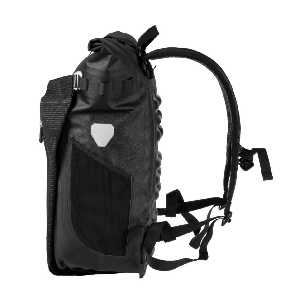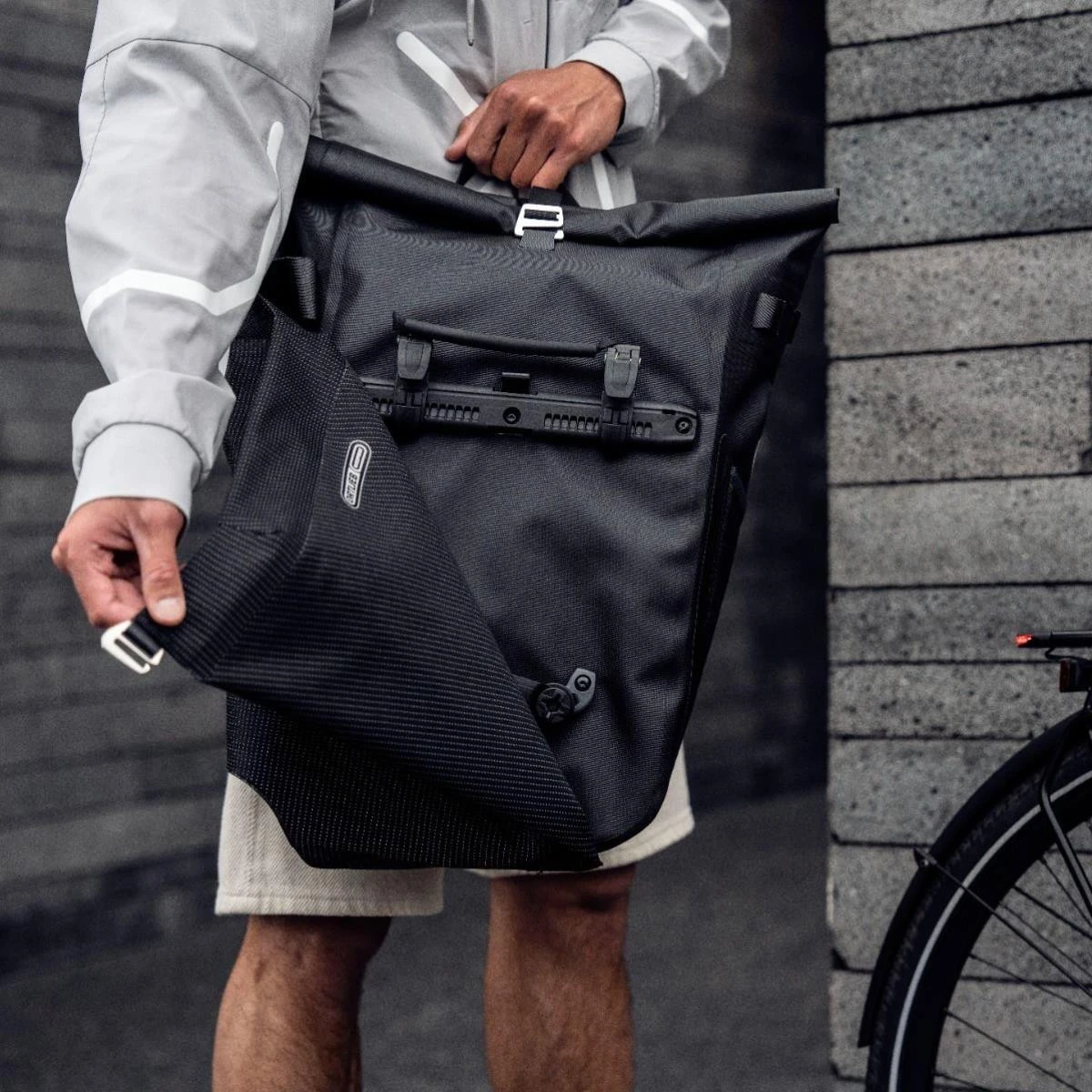 Die Ortlieb Vario PS High Visibility Fahrradtasche ist ein innovativer Hybrid der durch ein eingearbeitetes Reflexgarn im Flap und dem Schultergurt, sowie den seitlichen Reflektoren für eine bessere Sichtbarkeit in den frühen Morgenstunden und Dämmerung sorgt.