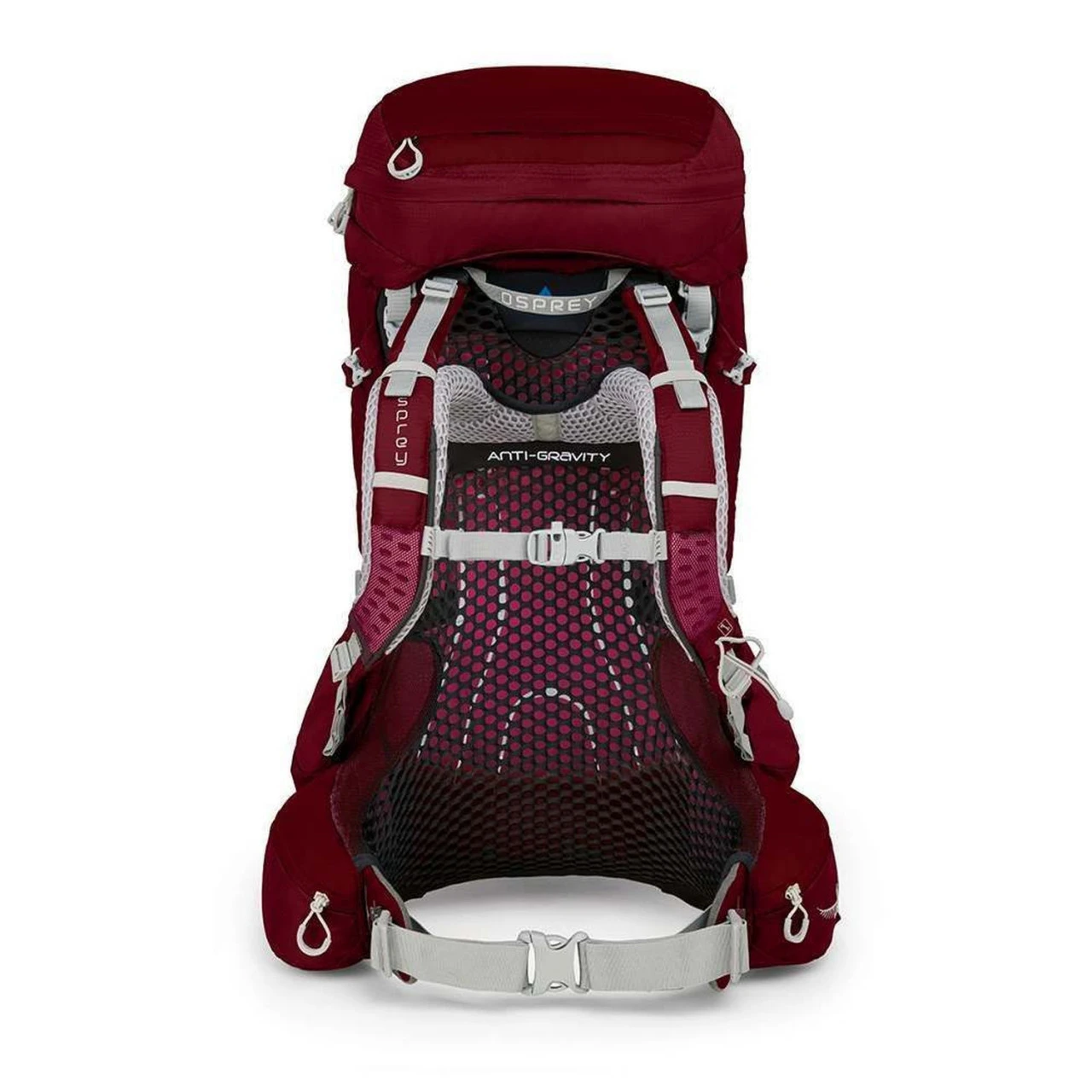 Der Osprey Aura AG 50 ist ein speziell an die weibliche Anatomie angepasster Trekkingrucksack. Das einzigartige AntiGravity™ Rückensystem lässt sich in der Länge verstellen, so dass es individuell an den Rücken angepasst werden kann. Es besteht aus einem 3D-Profil aus gespanntem Netz, was nahtlos in den Hüftbereich übergeht. So entstehen keine Reibungs- oder Druckstellen und die Lastenübertragung auf den Hüftgurt wird noch verstärkt. Der Hüftgurt hat 2 aufgesetzte Reißverschlusstaschen, damit du die wichtigen Dinge immer griffbereit hast, ohne deinen Rucksack absetzen zu müssen. Damit du problemlos an deine Sachen im Rucksack kommst, auch wenn diese in der Mitte gepackt sind, hat der Osprey Aura AG 50 zwei große Reißverschlusszugänge an den Seiten. Ein klassisches Schlafsack- oder Nassfach findet sich unten am Rucksack. Das Schlafsackfach kann vom Hauptfach abgeteilt werden. Der Deckel mit einem Volumen von 9 l kann abgenommen werden und der Rucksack ohne diesen benutzt. Dafür wird der Rucksack mit der FlapJacket™ Abdeckung verschlossen und diese in die Verschlussschnallen geklickt. An der Frontseite befindet sich eine große Netztasche, in der du bei langen Wanderungen z.B. deine Regenjacke verstauen kannst.