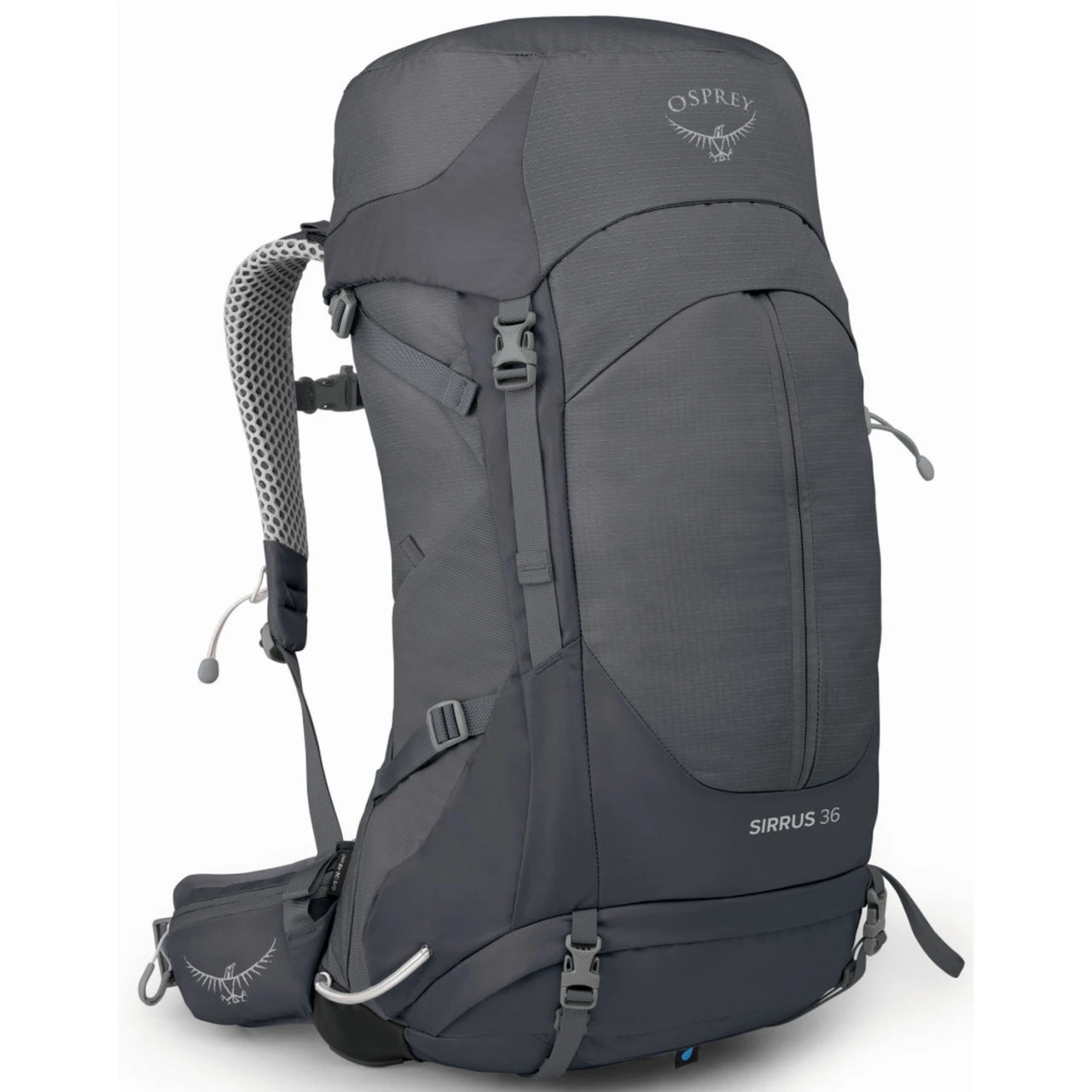Der Sirrus 36 von Osprey ist ein hervorragender Wanderrucksack, der mit allen wichtigen Komfortmerkmalen ausgestattet ist. Das weiche Netzgewebe des Airspeed-Netzrückens wurde nahtlos bis in den Hüftgurt gezogen, so dass keine lästigen Nähte reiben oder drücken können. Das Rückensystem ist stufenlos verstellbar, so dass er immer perfekt sitzt. Wenn der Sirrus 36 gepackt ist, hast du mehrere Möglichkeiten an deine Sachen im Hauptfach zu kommen. Wenn sie oben liegen, öffnest du den Deckel, sind sie eher in der Mitte, dann hast du einen Zugriff über einen Reißverschluss an der Seite. Der Seitenzugriff hat den Vorteil, dass du deinen Rucksack nicht mit dem Rücken auf den Boden legen musst und so dein T-Shirt oder deine Jacke nicht schmutzig werden. Du kannst auch über den Reißverschluss am Schlafsackfach zugreifen. Damit du den Sirrus nicht absetzen musst, wenn du deine Trekkingstöcke verstauen willst, hat er das Stow-on-the-Go™ Befestigungssystem. Das ist eine zusätzliche Stockhalterung direkt am Träger. Außerdem ist auf jeder Seite des Hüftgurtes eine Reißverschlusstasche aufgesetzt, so dass du Kompass, Handy oder Energieriegel immer sofort zur Hand hast. Da es sich auf längeren Touren empfiehlt, viel zu trinken, gibt es ein Trinkblasenfach. Du kannst aber auch eine Trinkflasche oder einen Regenschirm in den Netztaschen an der Seite verstauen. Mit der integrierten, abnehmbaren Regenhülle bleiben deine Sachen trocken, auch wenn sich das Wetter dreht.