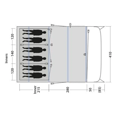 - Kabeldurchführungen ins Hauptzelt sowie in die Schlafkabine