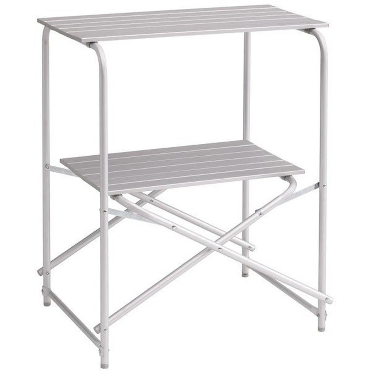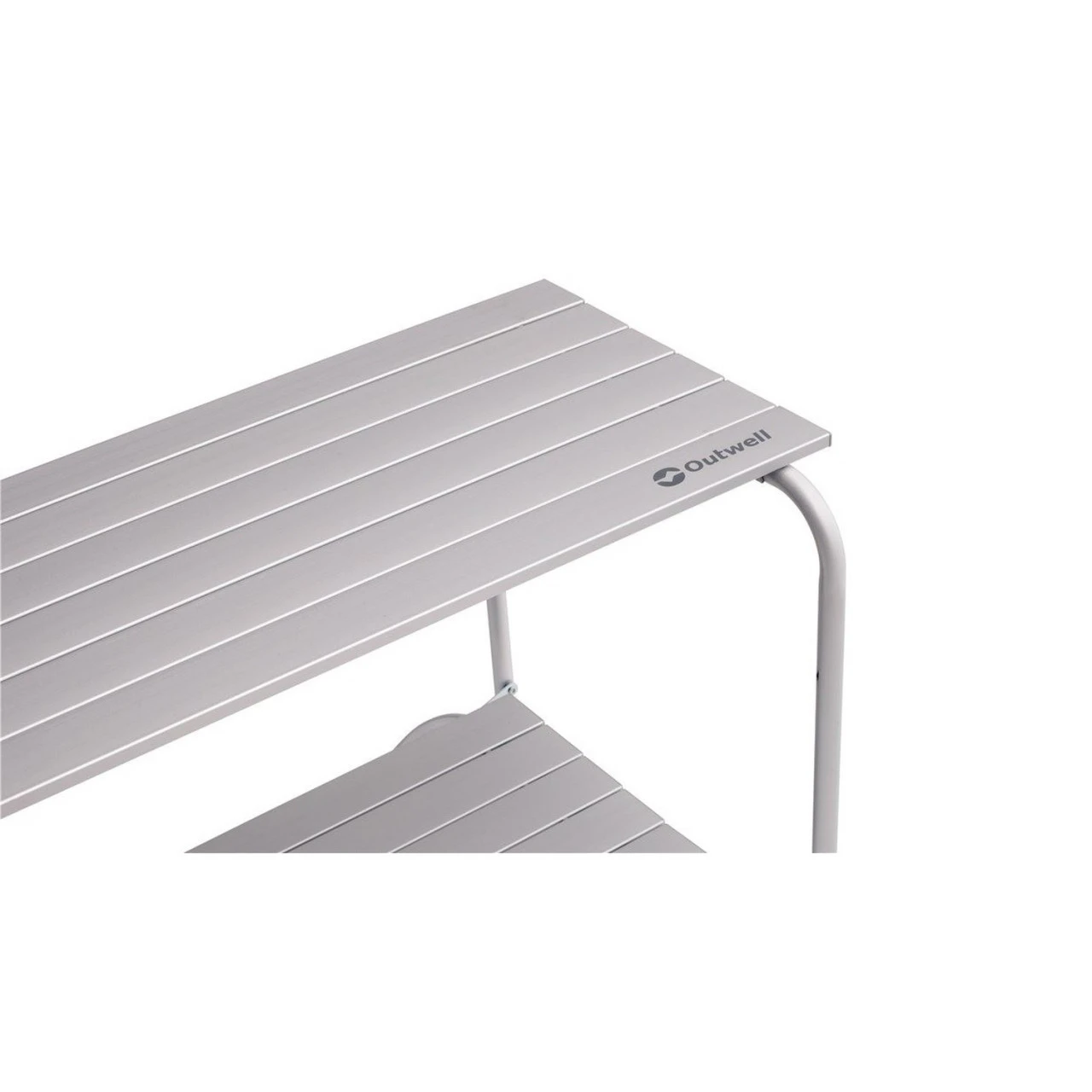 Der Outwell Crete Kitchen Table Küchentisch ist ein sehr leichter, aber robuster Küchentisch. Er ist klein zusammenfaltbar und dadurch ideal geeignet für minimalistisches Campen oder wenn du wenig Platz zum Transportieren hast. Der Crete Kitchen Table ist aus leichtem Aluminium gefertigt und die einfach zu säubernde Arbeitsplatte sowie das Regal können zusammengerollt werden. Er kann maximal bis 30 kg belastet werden.