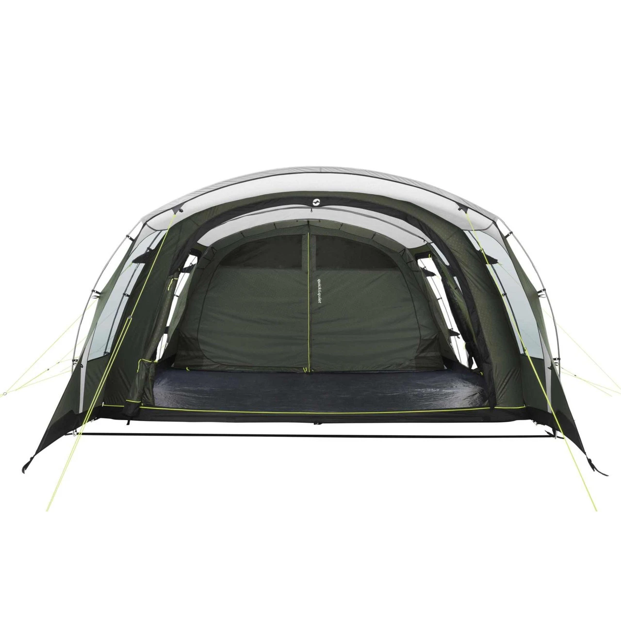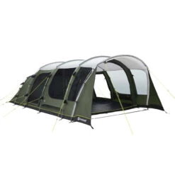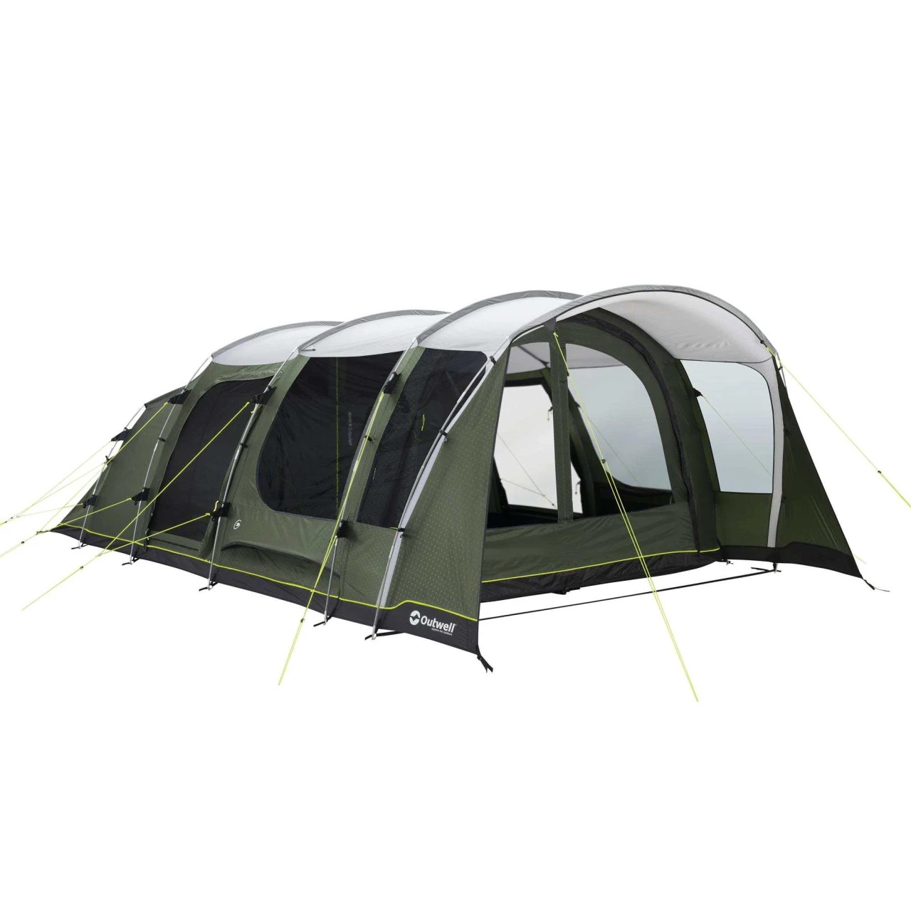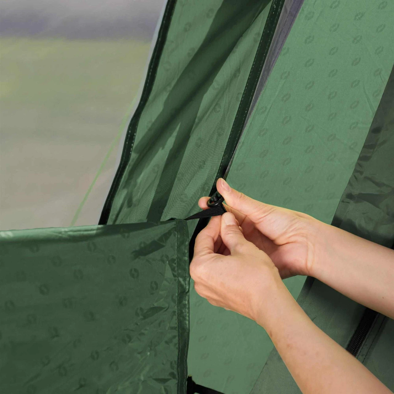 Das Outwell Greenwood 6 ist ein geräumiges Zelt, das sich besonders für größere Familien oder für Freundesgruppen eignet. Das große Vorzelt mit Fenstern in den Seitenwänden, den wegrollbaren Paneelen und dem großen Vordach vergrößert bei schönem Wetter deinen Wohnraum und bei Regen bietet es einen geschützten Bereich, bevor du dein Zelt betrittst. Die patentierte Quick & Quiet Mesh Door mit Magnetverschluss lässt dir verschiedene Möglichkeiten, den Eingangsbereich nach deinen Wünschen zu gestalten. Wenn du die Magnetfunktion nicht nutzen möchtest, kannst du die Front mit dem doppelten Reißverschluss komplett öffnen und hast so einen großartigen Panoramablick. Das eingearbeitete Moskitonetz hält beim Belüften die Insekten fern. Zwei zusätzliche Seiteneingänge geben dir und deiner Familie noch mehr Flexibilität bei der Gestaltung deines Greenwood 6 Familienzeltes. Die Premium Schlafkabine, die mit Hilfe eines Vorhangs in 2 Einzelkabinen unterteilt werden kann, ist abgedunkelt, um deinen Schlafkomfort zu erhöhen. Um die optimale Belüftung für das Greenwood 6 zu erreichen, gibt es an der Zeltrückseite das variable „Rear Ventilation System“ und das „Low Ventilation System“ auf beiden Seiten des Wohnbereichs. Die getönten Fenster halten zu grelles Sonnenlicht von euch ab. Wenn ihr abends eure Ruhe haben wollt, könnt ihr die Fenster einfach mit den Vorhängen verschließen.