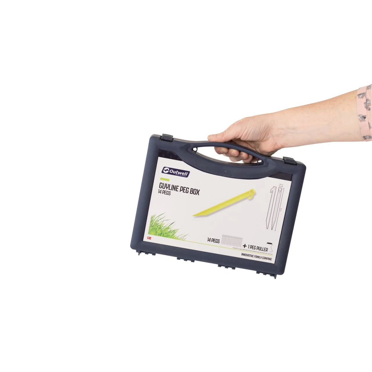 Mit diesen leuchtend gelben Guyline-Heringen aus der Outwell Guyline Peg Box sind Ihre Abspannleinen nachts besser sichtbar und Sie vermindern so das Risiko, zu stolpern. Diese Box mit 14 Kunststoffheringen, Heringsauszieher und Tragetasche ist für weiche und mittelharte Böden mit wenigen Steinen geeignet.