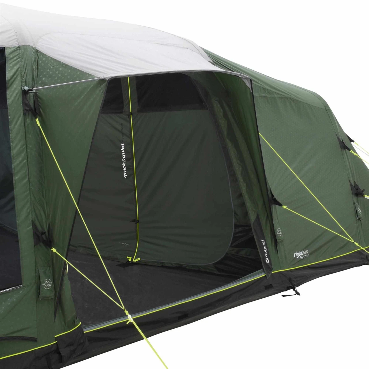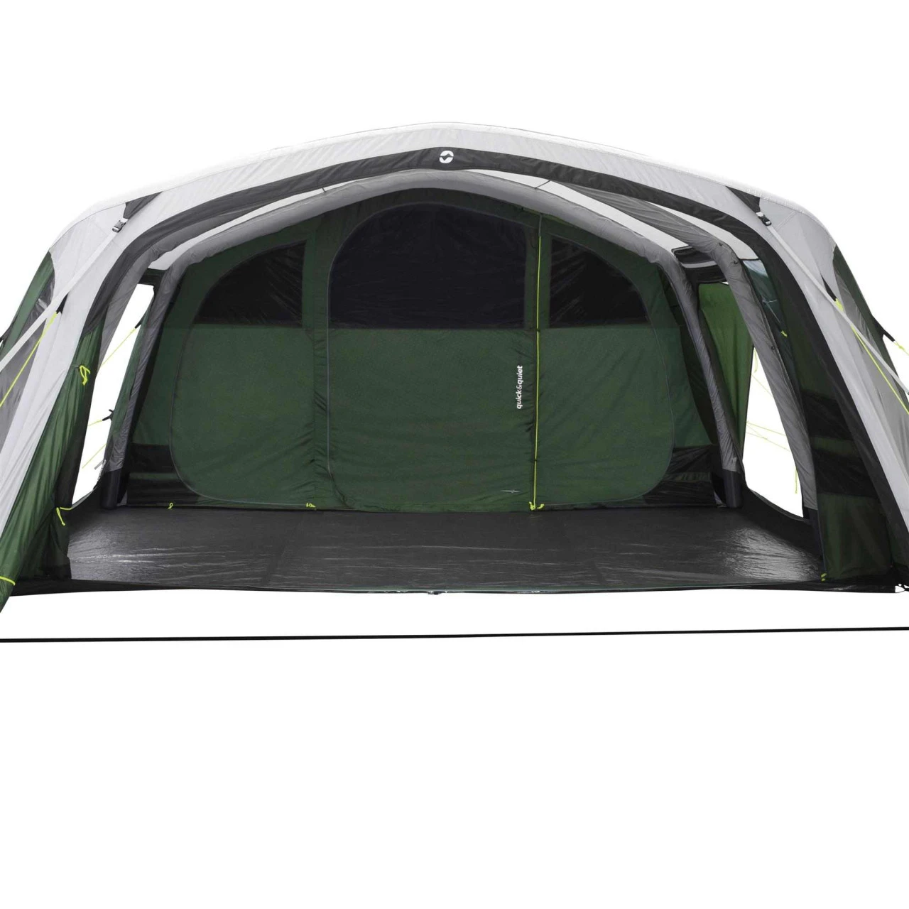 Der Eingang zum Wohnbereich ist mit einer Quick & Quiet Tür ausgestattet. Diese Tür verfügt über ein Magnetband, durch das sie sich nahezu geräuschlos öffnen lässt und schließt. Sie lässt sich aber durch die Reißverschlüsse auch komplett verschließen. In die Schlafkabine gelangst du auch durch eine Quick & Quiet Tür. Du kannst die abgedunkelte Premium-Schlafkabine mittels 2 Reißverschlussvorhängen in 2 oder 3 separate Schlafkabinen verwandeln. Zur optimalen Belüftung des Outwell Jacksondale 7PA gibt es an der Rückseite über die gesamte Breite eine individuell einstellbare Belüftung. Zusätzliche Belüftungsmöglichkeiten gibt es auch im Wohnbereich.