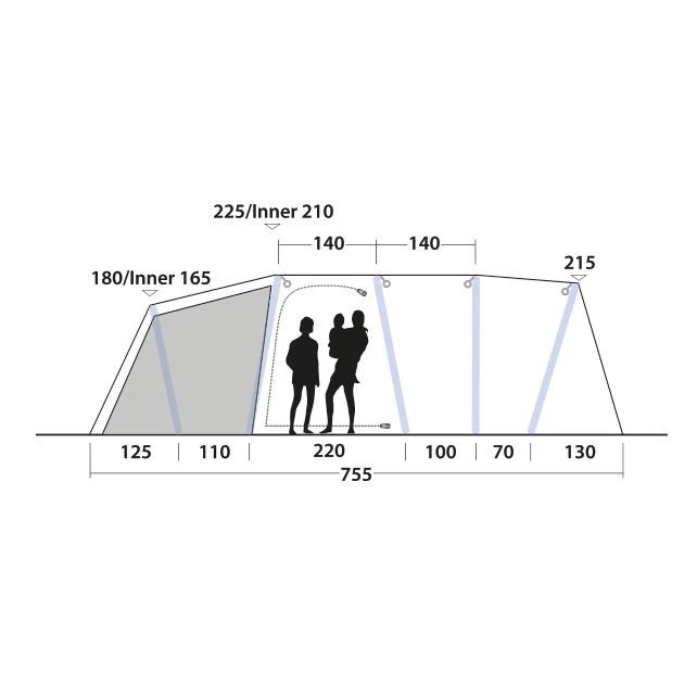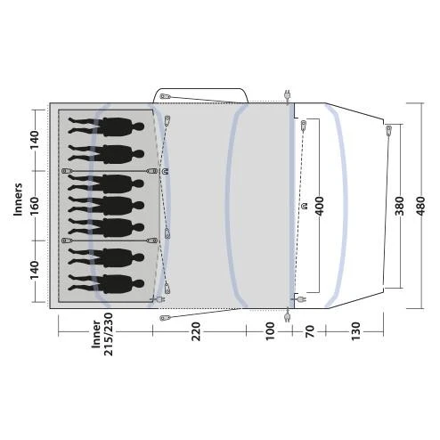 - Außenzelt und Innenzelt verfügen über Kabeldurchführungen