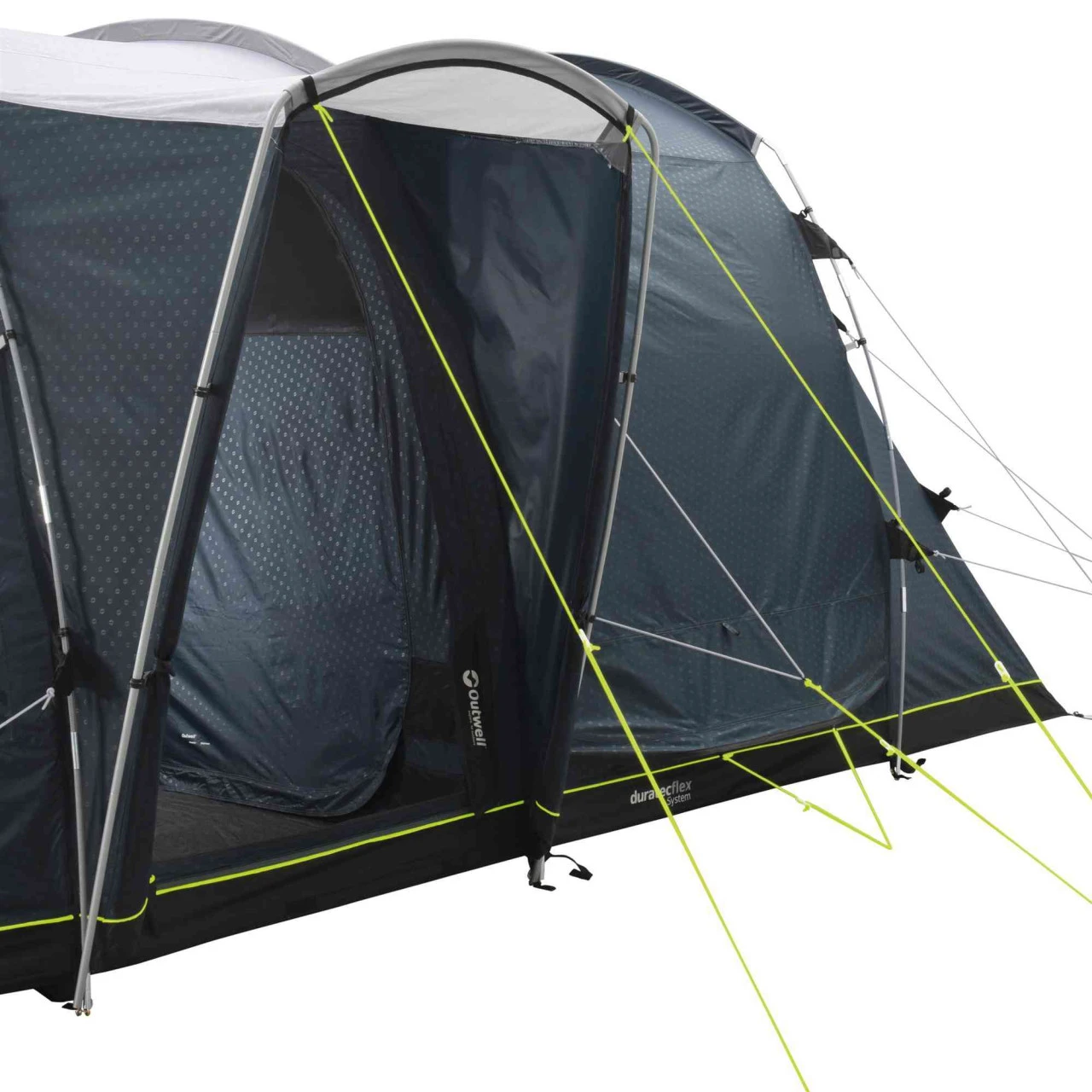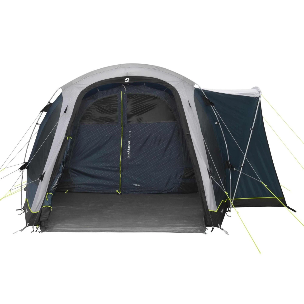 Das kompakte Nevada 4PE Familienzelt von Outwell ist ein optimales Zelt für Paare und junge Familien. Mit dem flexiblem und leichtem Duratec-Gestängesystem lässt es sich schnell aufbauen. Der überdachte Seiteneingang, der so typisch für das Nevada-Design ist, wurde verbessert und hat zwei wegrollbare Seitenpaneele bekommen, die noch besser vor schlechtem Wetter schützen. Die abgedunkelte Ambassador Master Schlafkabine bietet mit 230 cm Tiefe und der vollen Stehhöhe genügend Platz, um bequem auch Feldbetten aufzustellen. Die Quick & Quiet Tür ermöglicht ein nahezu geräuschloses Verlassen oder Betreten der Schlafkabine, die durch einen Reißverschlussvorhang in zwei Einzelkabinen geteilt werden kann. Der große Fronteingang des Nevada 4 Familienzeltes kann mit Hilfe des doppelten Reißverschlusses komplett geöffnet werden. Er ist aber auch mit einem Moskitonetz ausgestattet, so dass auch nachts gelüftet werden kann, ohne dass Insekten ins Zelt gelangen. Neu ist neben der individuell einstellbaren Belüftung über die komplette Rückseite jetzt auch ein „Low-Ventilation-System“ an der Schlafkabine. Große getönte Fenster mit aufrollbaren Vorhängen verhindern neugierige Blicke ins Zelt.