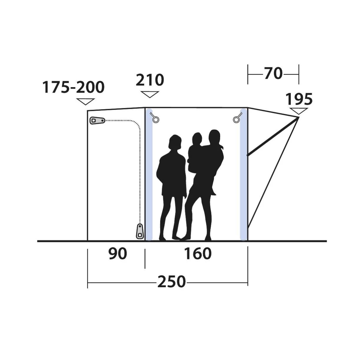 | Aufbau-/ Wohnfläche | 250 x 260 cm / 160 x 260 cm |
