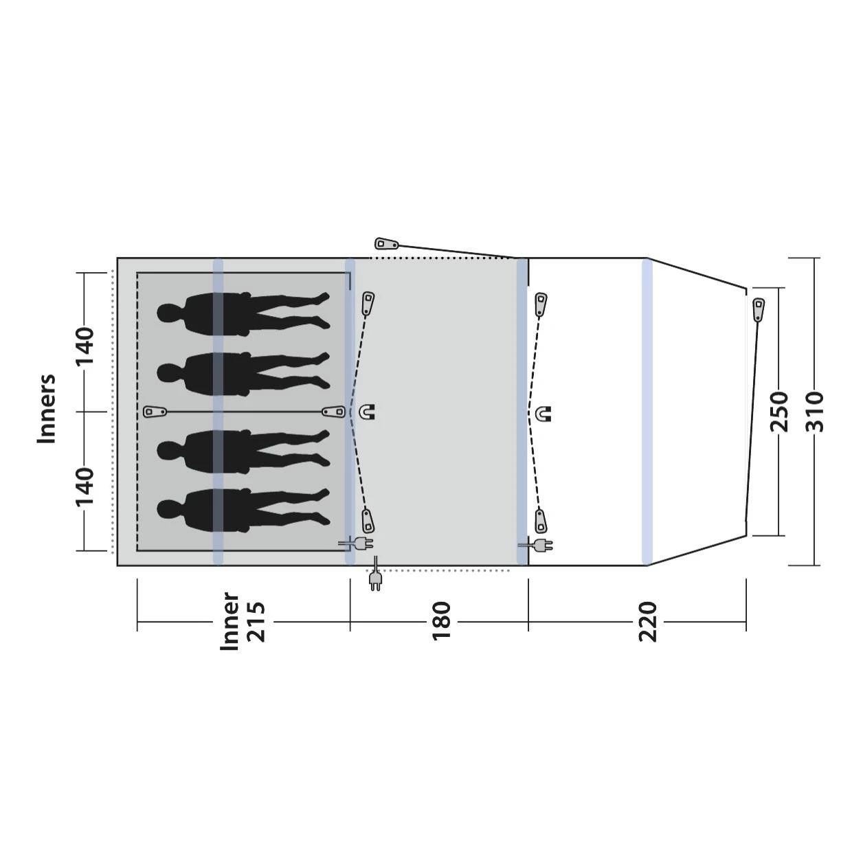 - Abgedunkelte Schlafkabinen im inneren des Zeltes