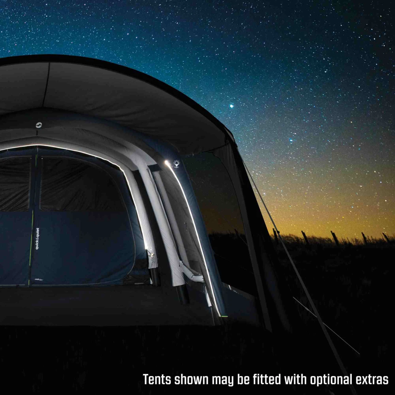 Das patentierte Outwell Nightlight System bietet einen praktischen Komfort für das Camping in der Dämmerung oder Dunkelheit. Bei den Imperial Air Zelten sowie in den Superior Air Touring Fahrzeugvorzelten wurde das HookTrack-System so weiterentwickelt, dass in den Halterungen ein Glasfaserelement liegt, welches von dem wiederaufladbaren Outwell Nightlight System Leuchtelemente-Set beleuchtet wird. Du steckst das Leuchtelement in die Tasche am Ende der HookTrack Leiste und kannst das Licht in 3 Einstellungen per Fernbedienung steuern. Aufgeladen wird das ONS Leuchtmittel-Set über einen USB-C Anschluss. Dank des weichen ONS-Lichts kannst du dich in der Nacht im Zelt oder Vorzelt bewegen oder es verlassen, ohne eine Taschenlampe suchen zu müssen und durch den Lichtstrahl andere Personen aufzuwecken. Ein weiterer Vorteil ist, dass du dein Zelt sofort findest, wenn du im Dunkeln zurück zum Campingplatz kommst.