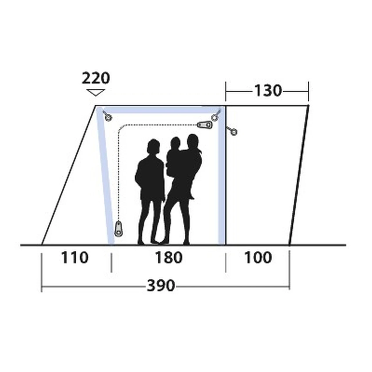 Das Outwell Jonesville 290SA Flex ist das am flexibel einsetzbarste Busvorzelt. Es lässt sich durch das Luftkanalgestänge schnell und einfach aufbauen und kann parallel an beiden Seiten des Fahrzeugs befestigt werden. Das besonders robuste und strapazierfähige Rip-Stop Material sowie die 6000 mm Wassersäule machen das Zelt komplett wasserdicht. Durch die Vier-Schieber-Reißverschlüsse in der Fronttür kannst du entscheiden, ob du die Tür halb oder ganz wegrollst oder ob du den Eingang nur mit einem Moskitonetz schützen möchtest. Wenn du einen größeren, geschützten Wohnraum möchtest, kannst du die große Eingangstür ganz einfach nach vorn versetzen. Durch die Seitentür, die auf der dem Fahrzeug abgewandten Seite liegt, bekommst du noch mehr Flexibilität in der Nutzung des Jonesvill 290SA Flex. Auch diese Seitentüren haben ein Moskitonetz hinter der Wand, was zur besseren Durchlüftung im Zelt dient. Mit der Optional erhältlichen, abgedunkelten Schlafkabine kannst du 2 zusätzliche Schlafplätze im Zelt schaffen. Der Zugluftstopper an der Bodenplane der Schleuse verhindert, dass es bei Wind und Wetter im Zelt zieht. Das HookTrack System ermöglicht es dir, Lampen oder andere Dinge bis zu 1,5 kg Gewicht flexibel im Zelt aufzuhängen und macht es somit noch wohnlicher. Eine absolute Neuheit ist das Outwell Nightlight System. Am Eingang und im Zelt ist in den Halteschläuchen für das HookTrack System eine Beleuchtung integriert.