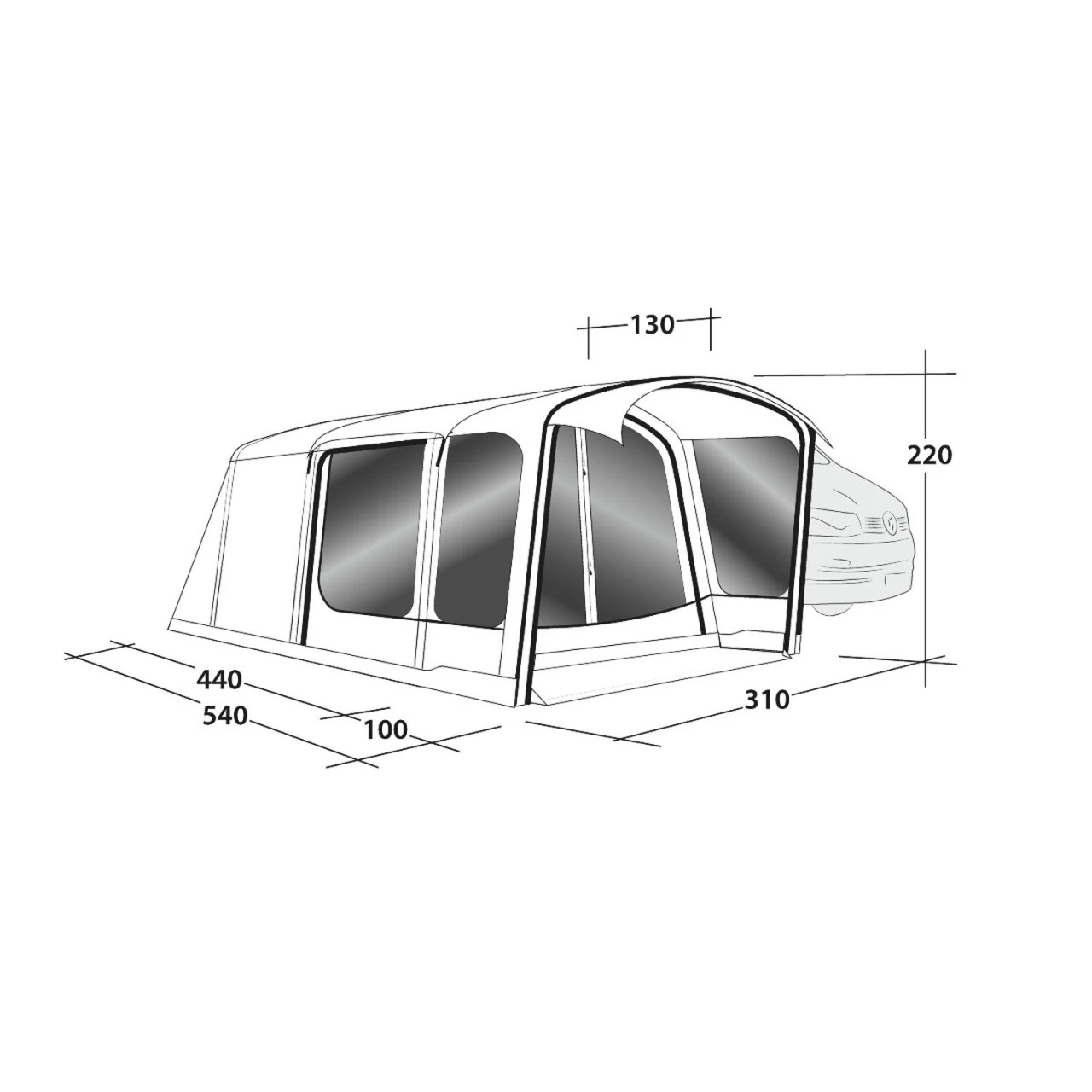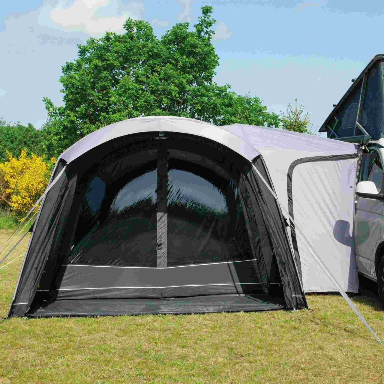 Das Outwell Jonesville 440SA Flex ist das am flexibel einsetzbarste Busvorzelt. Es lässt sich durch das Luftkanalgestänge schnell und einfach aufbauen und kann parallel an beiden Seiten des Fahrzeugs befestigt werden. Das besonders robuste und strapazierfähige Rip-Stop Material sowie die 6000 mm Wassersäule machen das Zelt komplett wasserdicht. Durch die Vier-Schieber-Reißverschlüsse in der Fronttür kannst du entscheiden, ob du die Tür halb oder ganz wegrollst oder ob du den Eingang nur mit einem Moskitonetz schützen möchtest. Wenn du einen größeren, geschützten Wohnraum möchtest, kannst du die große Eingangstür ganz einfach nach vorn versetzen. Durch die Seitentür, die auf der dem Fahrzeug abgewandten Seite liegt, bekommst du noch mehr Flexibilität in der Nutzung des Jonesvill 440SA Flex. Auch diese Seitentüren haben ein Moskitonetz hinter der Wand, was zur besseren Durchlüftung im Zelt dient. Mit der Optional erhältlichen, abgedunkelten Schlafkabine kannst du 2 zusätzliche Schlafplätze im Zelt schaffen. Der Zugluftstopper an der Bodenplane der Schleuse verhindert, dass es bei Wind und Wetter im Zelt zieht. Das HookTrack System ermöglicht es dir, Lampen oder andere Dinge bis zu 1,5 kg Gewicht flexibel im Zelt aufzuhängen und macht es somit noch wohnlicher.