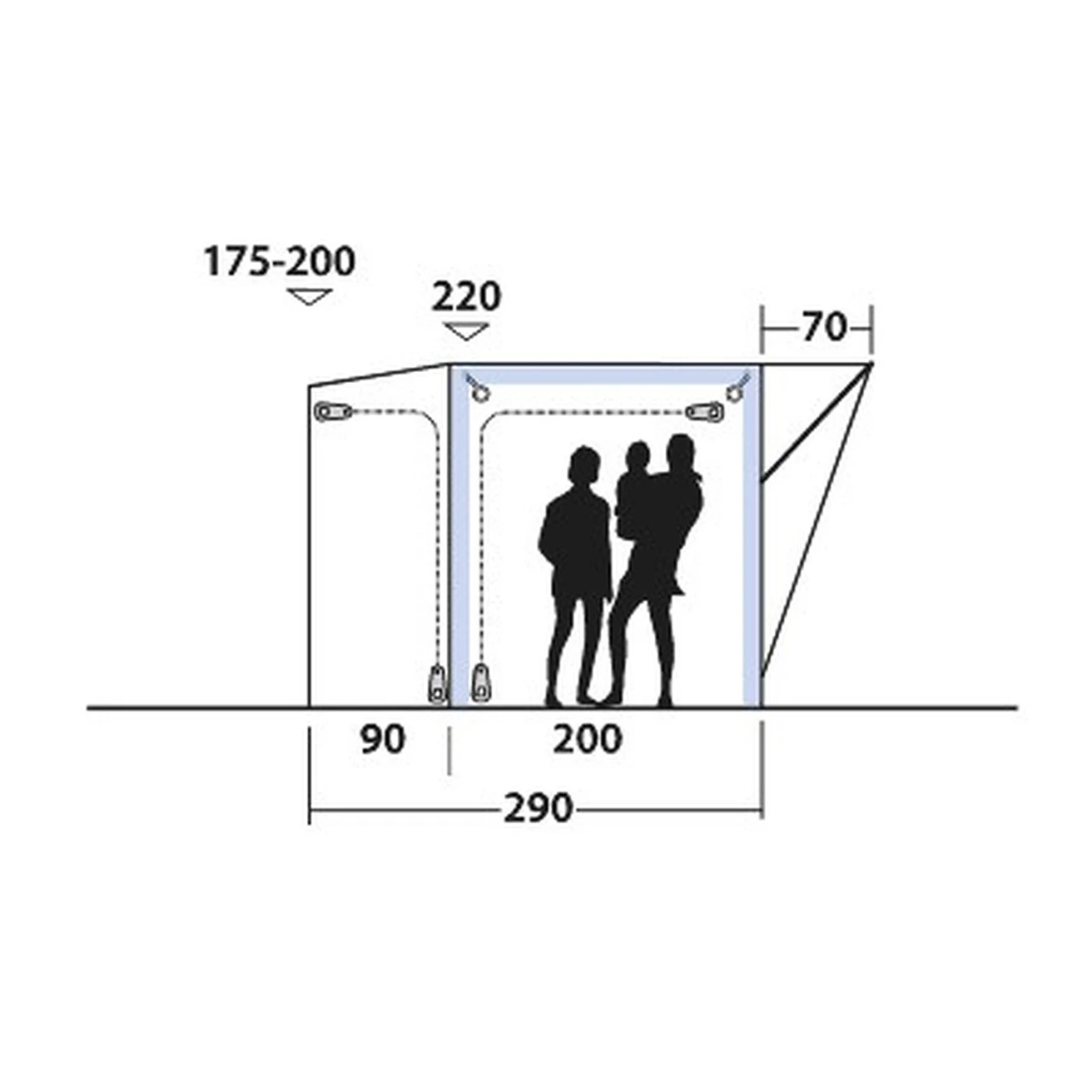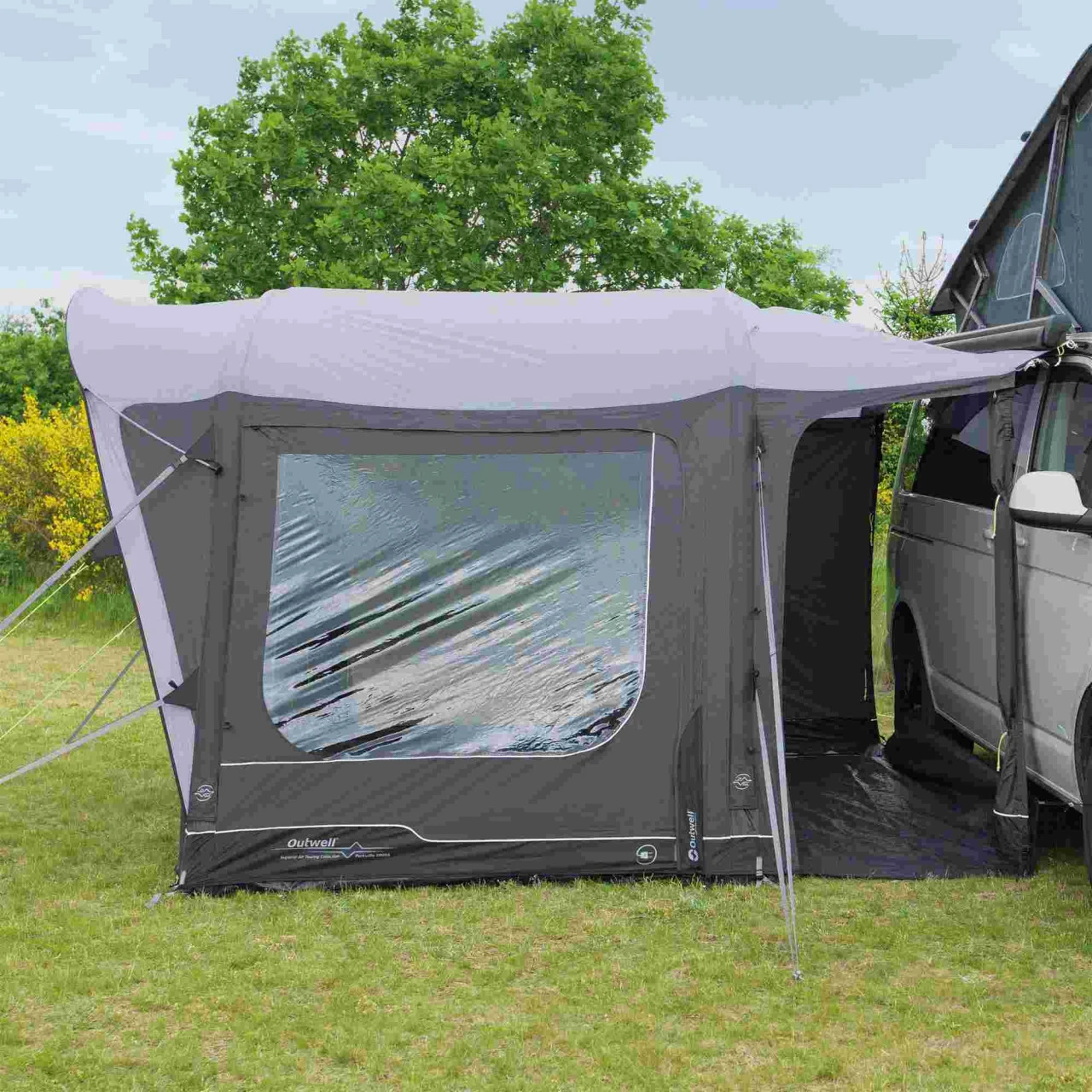Das Outwell Parkville 200SA Busvorzelt lässt sich durch das Luftkanalgestänge einfach und schnell aufbauen. Es kann an beiden Seiten des Fahrzeugs befestigt werden und bietet zusätzlichen Wohnraum. Die große Eingangstür kann vollständig geöffnet werden und bietet so einen einmaligen Panoramablick. Um das Zelt auch nachts optimal zu belüften, hat die Vorderfront ein zusätzliches Moskitonetz. Die beiden großen Seitentüren mit getönten Fenstern bieten eine große Flexibilität bei der Nutzung des Parkville 200SA. Mit einem optional erhältlichen, getönten Innenzelt verwandelst du es in einen zusätzlichen Schlafplatz für Gäste. Das große Vordach bietet Schutz vor Sonne und Regen, wenn das Zelt geöffnet ist. Du kannst dein Fahrzeug durch eine der beiden Schleusentüren betreten, ohne durch das Zelt laufen zu müssen. Die Schleuse verfügt auch über eine Bodenplane mit integrierter Zugluftschutz-Schürze. Eine absolute Neuheit ist das Outwell Nightlight System.