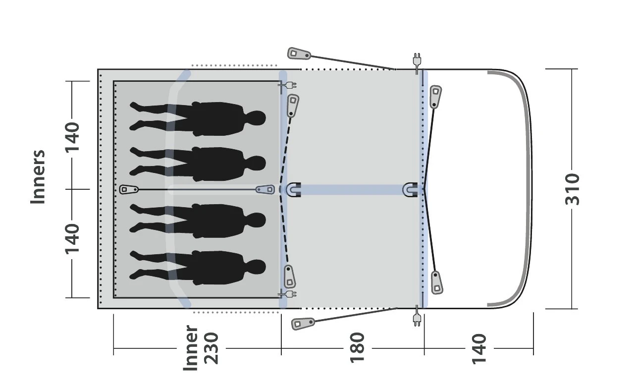 - Außenzelt und Innenzelt verfügen über Kabeleinführungen