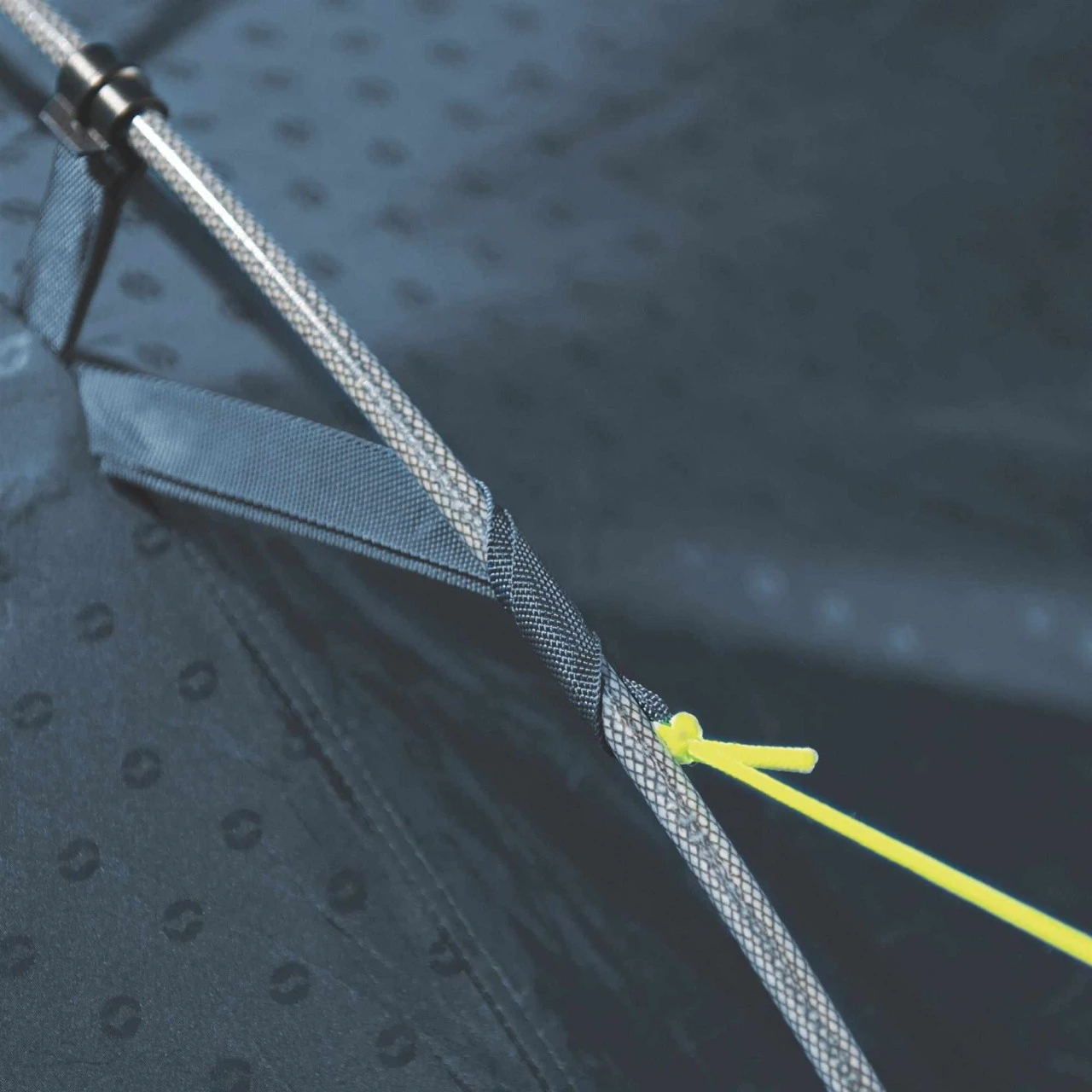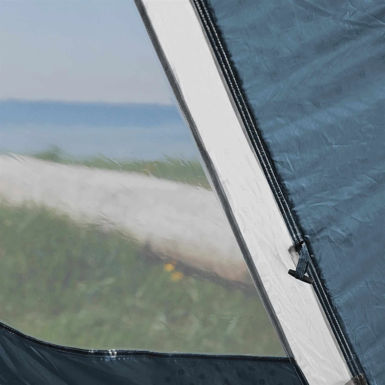 Die Schlafkabine ist bereits vormontiert, was den Aufbau des Zeltes noch beschleunigt. Das dunkle Material an den Seitenwänden und der Decke verringert den Lichteinfall und verbessert so die Schlafqualität. Das ist perfekt für alle, die morgens nicht von den ersten Sonnenstrahlen geweckt werden wollen oder auch für einen Mittagsschlaf. Das Innenzelt kann mit Hilfe eines Vorhangs auch in 2 separate Kabinen geteilt werden. In den Netztaschen kannst du kleine Gegenstände, wie eine Taschenlampe oder ein Handy, griffbereit aufbewahren.