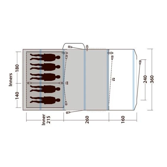 Mit dem Outwell Sundale 5PA Familienzelt entscheidest du dich für ein schnell und einfach aufzubauendes Luftzelt mit 3 Zonen – dem Wohnbereich, dem Nassbereich sowie dem Schlafbereich.