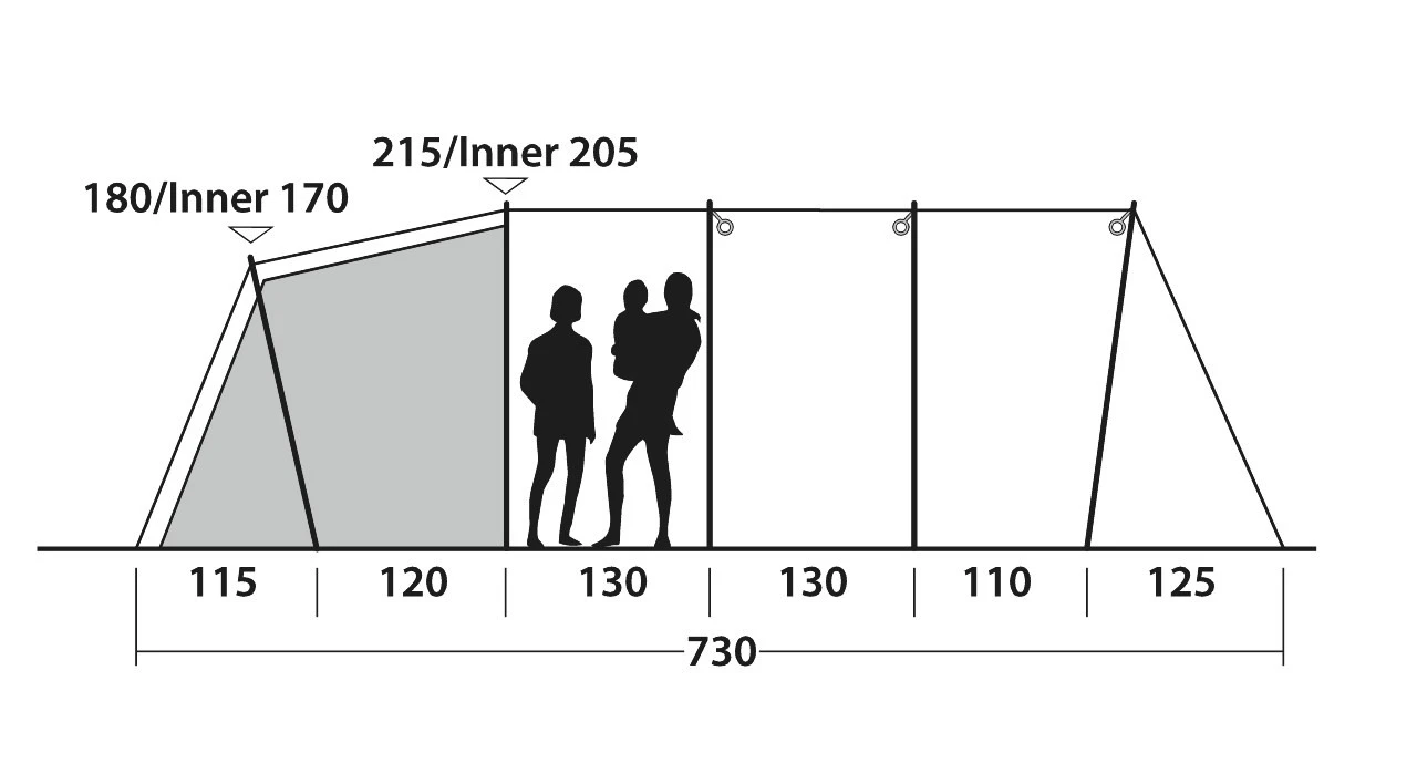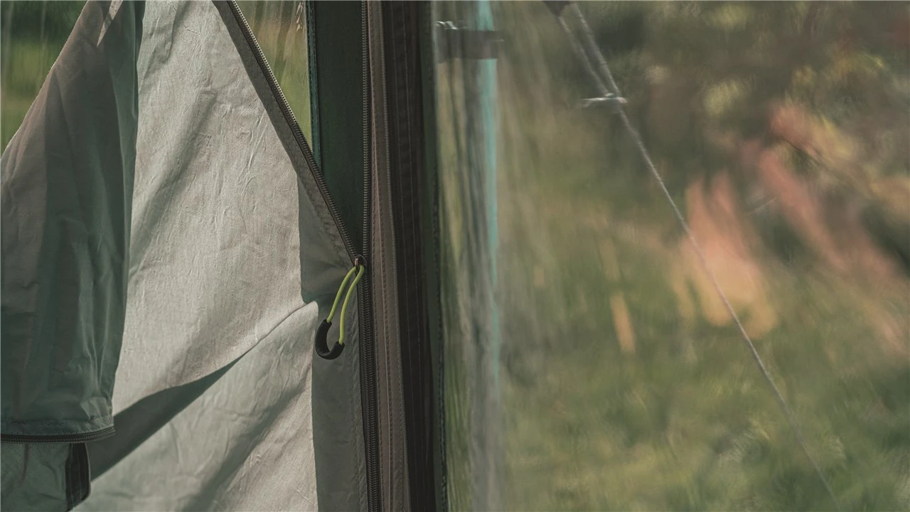 Das Outwell Yosemite Lake 5TC Familienzelt ist ein Drei-Zonen-Zelt mit zwei abgedunkelten Schlafkabinen und eignet sich ideal für einen Trip mit bis zu 5 Personen. Es besteht aus einem atmungsaktiven Baumwollmischgewebe, welches das Zeltinnenklima reguliert und für einen angenehmen Komfort bei jedem Wetter sorgt. In das Innere des Yosemite Lake 5TC gelangst du durch einen der drei Eingänge. Diese sind mit einem Moskitonetz ausgestattet worden und ermöglichen einen einfachen Zugang und eine gute Belüftung im vorderen Bereich des Zeltes. Die Zwischentür zum Wohnraum des Zeltes wurde mit dem Quick & Quiet Magnetverschluss ausgestattet und gewährt dir einen geräuschlosen Zutritt. Außerdem ist es dir möglich die Fronttür vollständig zu öffnen. Das Zelt besitzt große, getönte Fenster, die viel Licht ins Innere lassen. Für mehr Privatsphäre und Schatten können diese einfach mit den Vorhängen abgedunkelt werden. Die zwei abgedunkelten Ambassador Master Schlafkabinen sind größer, haben mehr Kopffreiheit und verfügen über eine Kabeldurchführung. Außerdem verfügt das Yosemite Lake 5TC über eine völlig wasserdichte und eingenähte Bodenplane, die verhindert, dass Nässe und Insekten hineinfinden. Das integrierte HookTrack-System ermöglicht dir eine vielseitige Positionierung von Lampen und Gegenständen bis zu 1,5 kg. Möchtest du im Zelt ein wenig Ordnung halten, helfen dir Netztaschen im Innenzelt. Dort kannst du kleine Gegenstände sicher und griffbereit aufbewahren. Für eine angenehme Belüftung im Zelt sorgt das Rear Ventilation System. Dieses reguliert den Luftstrom von geschlossenem bis vollständig geöffneten Reißverschluss.