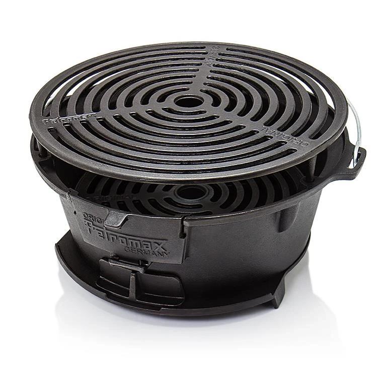 Der Petromax Feuergrill ist ein hochwertiger, aus Gusseisen gefertigter Grill der mit Holzkohle sowie Grillbriketts angefeuert werden kann. Er überzeugt nicht nur als Grill, sondern bietet die perfekte Gelegenheit Deine Petromax Feuertöpfe zu nutzen. Der Grillrost des Petromax Feuergrill ist höhenverstellbar. Die Oberfläche des Feuergrills ist vorbehandelt, sodass Du direkt losgrillen kannst. Und dank dem natürlichen Antihafteffekt von Gusseisen ist der Grillrost besonders leicht zu reinigen.