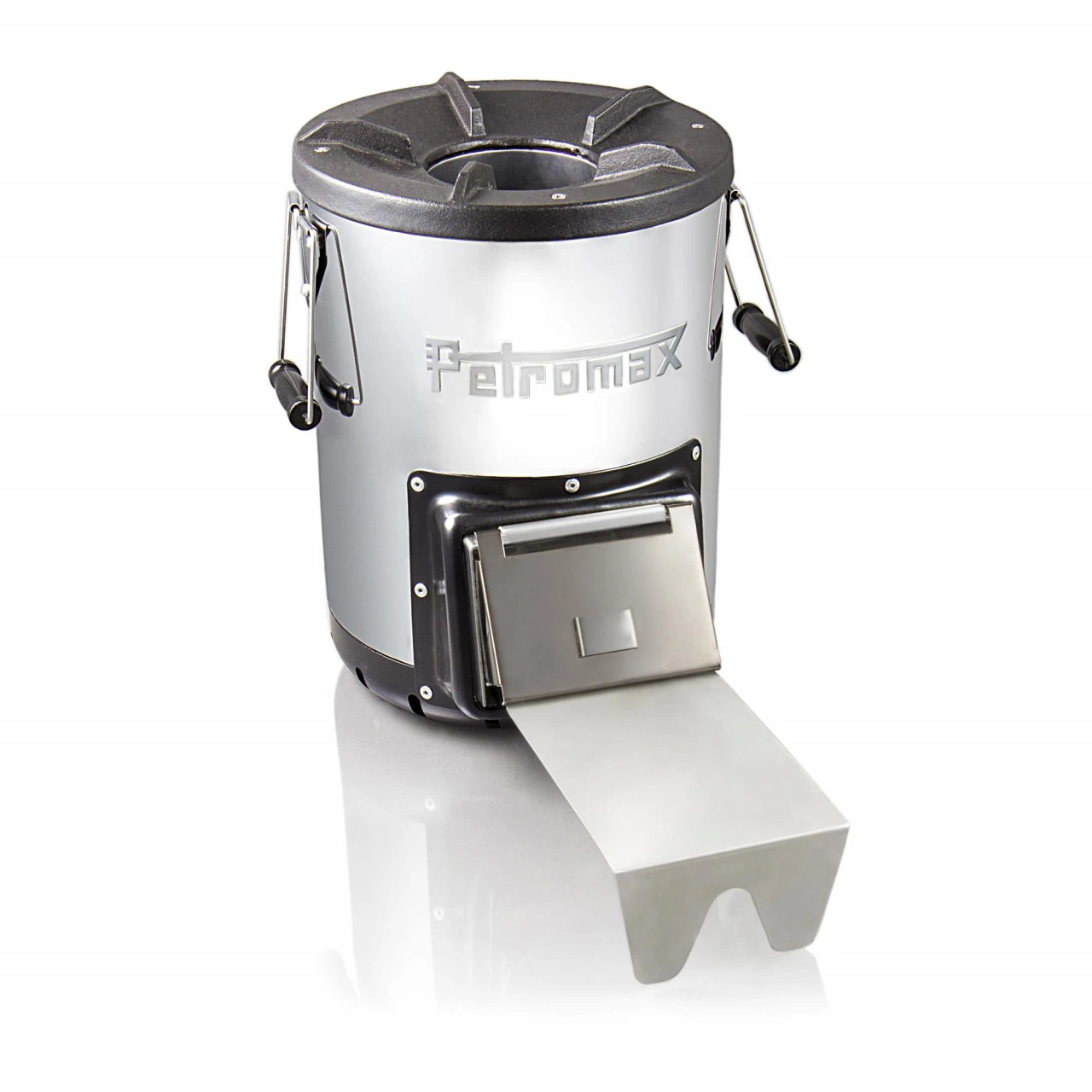 Der aus Edelstahl und Gusseisen gefertigte Petromax Raketenofen kombiniert den Kamineffekt mit dem Holz-Vergaser-Prinzip, was ihn zum optimalen Begleiter auf Campingausflügen macht. Ein zusätzlicher Pluspunkt ist der sparsame und effiziente Verbrauch von Brennmaterial und die optionale Nutzung des gusseisernen Oberteils zur Zubereitung von Mahlzeiten in Guss- und Schmiedeeiserne Pfannen oder Feuertöpfen.