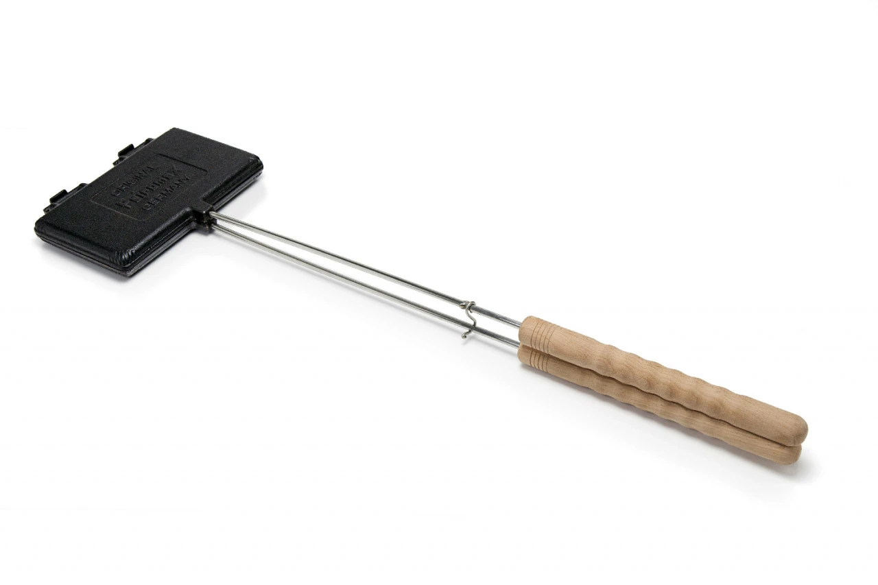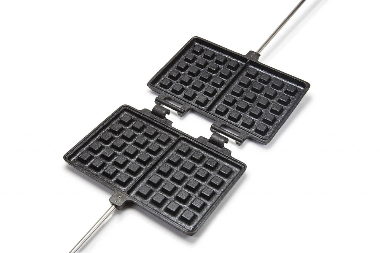 Mit dem Petromax Waffeleisen musst du auch in deiner Oudoorküche nicht auf leckere Waffeln verzichten. Einfach den Waffelteig in die gusseisernen Formen einfüllen, über dein Lagerfeuer oder deinen Grill legen und schon ist das leckere Gebäck fertig! Der lange Stab mit komfortablen Holzgriffen sorgt für ausreichend Abstand zur Wärmequelle und eine sichere Anwendung. Dank des praktischen Verschlusshakens hält die Waffelformen zusammen, und verhindert so eine herauslaufen des Teiges. Mit dem „seasoned finish“ ist das Waffeleisen sofort einsatzbereit und backt zwei Waffeln der Größe 9 x 11 cm. Einmal aufgeheizt, lässt sich die gespeicherte Restwärme für ein schonendes Ausbacken nutzen. Dank der Scharniere lassen sich die Gusshälften zum Reinigen auseinander nehmen.