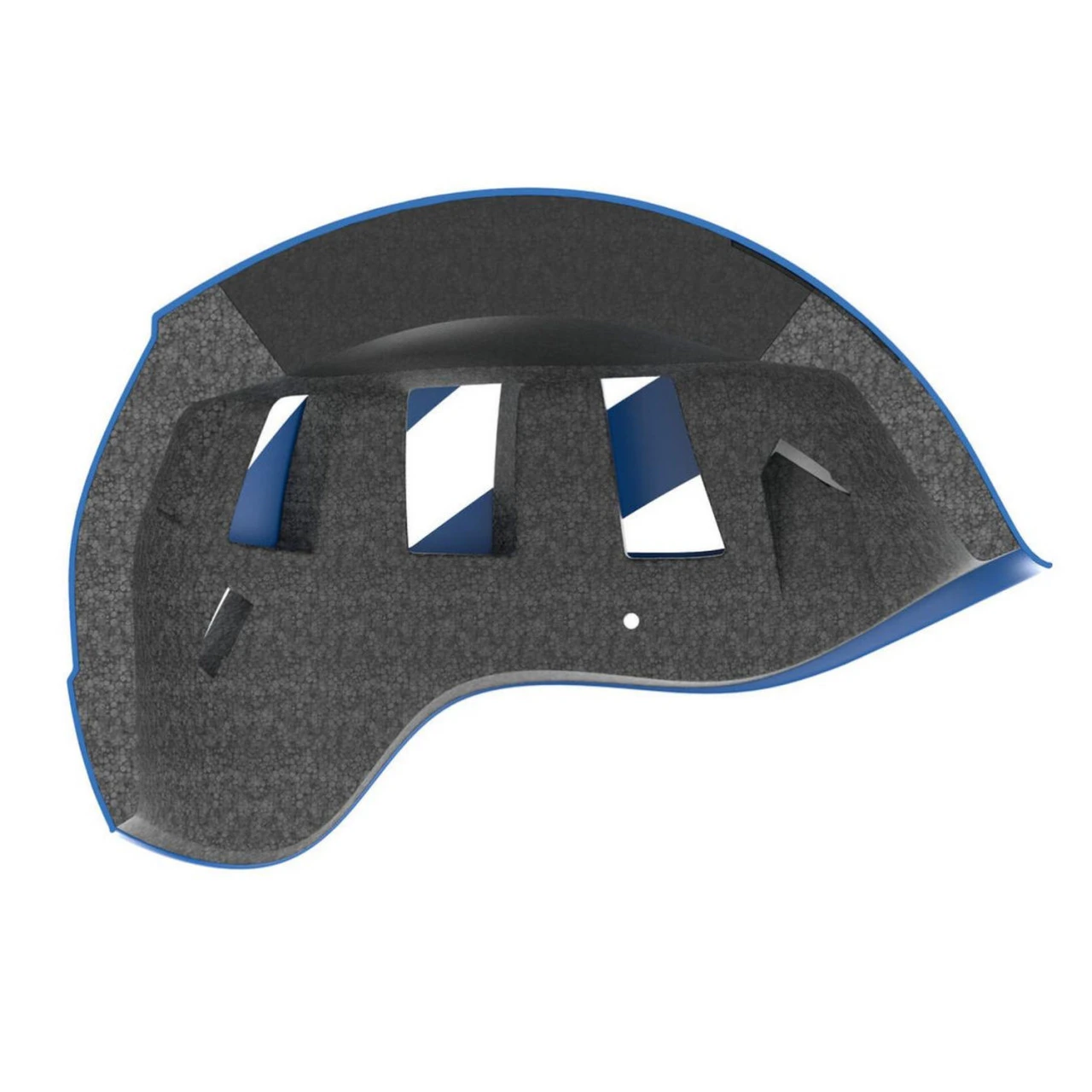 Der Petzl Boreo Kletterhelm besitzt eine dicke Außenschale aus ABS. Die Innenschale ist aus EPS-Schaum. Der Helm ist im Nackenbereich tiefer gezogen, was den Aufprallschutz erhöht. Große Belüftungsöffnungen sorgen für hohen Tragekomfort.