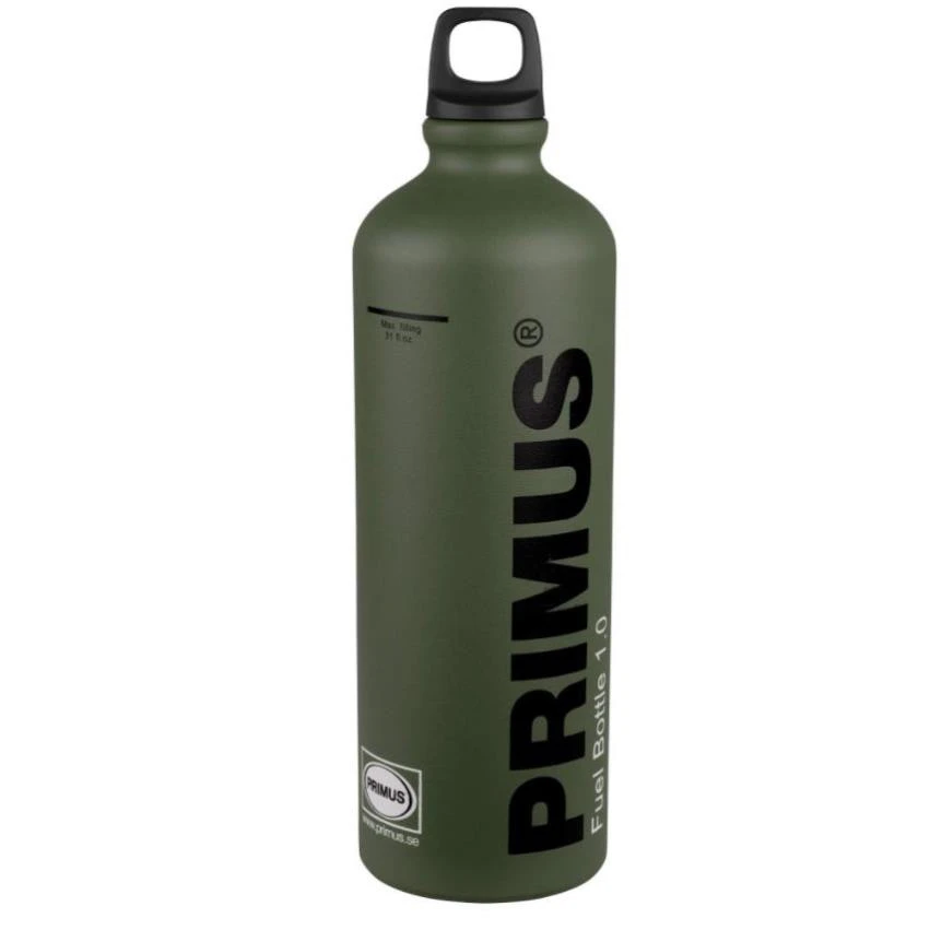 Die ultraleichte Primus Brennstoffflasche 1000 aus extrudiertem Aluminium ist für alle Brennstoffe geeignet. Das Standardanschlussgewinde paßt – neben den Primuskochern – auch auf die meisten anderen Benzin- oder Petroleum-Kocher mit Druckpumpen.