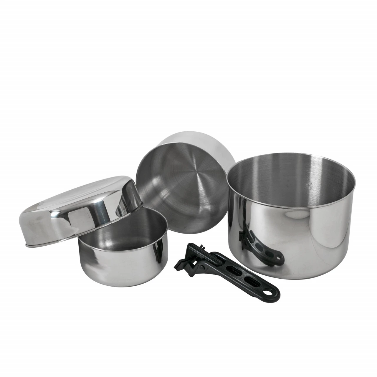 Das Relags Biwak Edelstahl 3 ist ein grosses Topf-Set für Familien, Gruppen oder die größere Outdoor-Küche. Auch ideal für die Campingküche am Platz oder Lager geeignet.