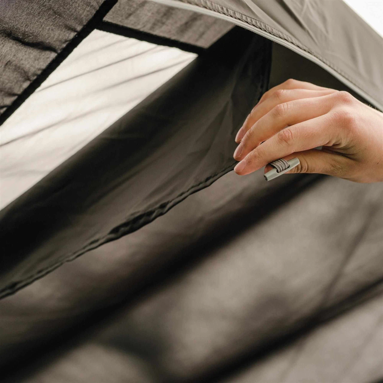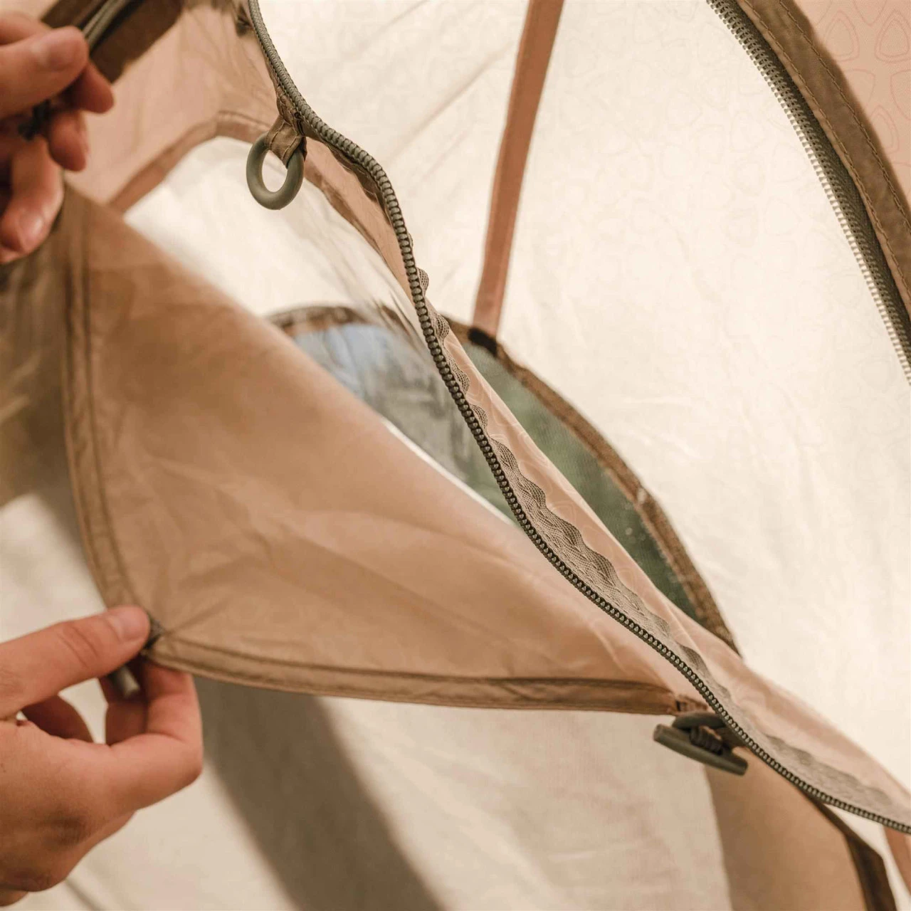Damit eine wirkliche Rundum-Belüftung erreicht werden kann, sind beide Eingänge komplett mit Moskitonetz versehen. So können beide Türen abends und in der Nacht geöffnet bleiben und es kommen keine Moskitos zu euch ins Zelt.