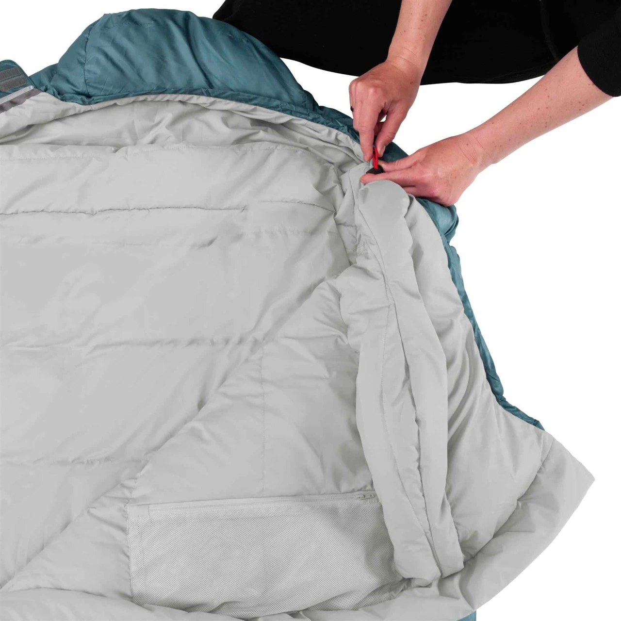 Du suchst nach erstklassigem Schlafkomfort und optimaler Wärmeisolierung? Dann ist der Gully Daunenschlafsack von Robens genau das Richtige für dich. Er ist der perfekte Begleiter für deinen nächsten Campingausflug, denn er hat eine bequeme Mumienform mit viel Bewegungsfreiheit – und 2 Netztaschen im Inneren, damit du kleine Gegenstände immer in Reichweite hast. Wenn du einmal eingepackt bist, schützen die microThermo-Ball-Fasern in der Kapuze und im Fußbereich vor Feuchtigkeitsaufnahme und Kondenswasserbildung durch den eng anliegenden Außenstoff. Außerdem minimieren die überarbeitete Position des Thermokragens und des Profils Zugluft und Wärmeverlust, während unser spezielles Einklemmschutzsystem ein sicheres Lösen der Schulter- oder Kapuzenkordeln ermöglicht, ohne die Haut einzuklemmen. Und zu guter Letzt sorgen 50% MicroThermo-Ball-Füllung auf der Oberseite für eine hervorragende Daunenunterstützung bei Feuchtigkeit, damit du in jeder Umgebung einen erholsamen Schlaf genießen kannst. Hol dir den Gully Daunenschlafsack von Robens für eine wärmere, komfortablere Nacht unter dem Sternenhimmel!