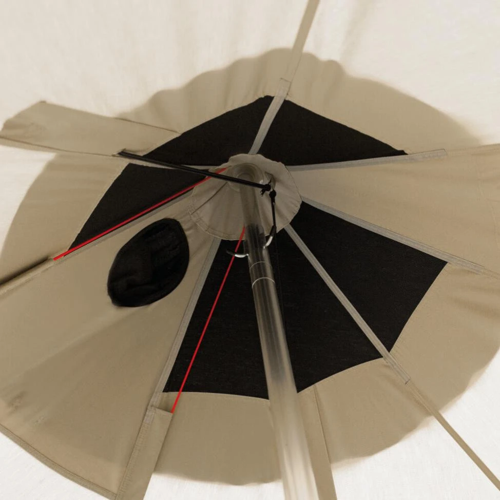 - Kaminrohröffnung für separat erhältlichen Zeltofen