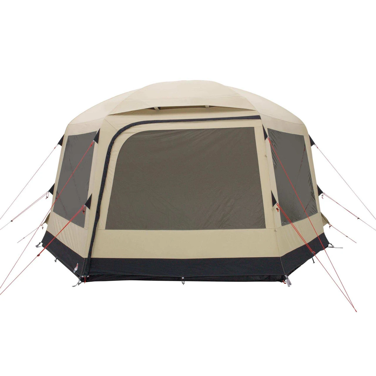Mit der Robens Yurt bist du auf jedem Campingplatz der absolute Hingucker. Sie kann als Gruppenzelt für bis zu 7 Personen, als Glamping-Zelt, als Ess- oder Aufenthaltszelt o.ä. genutzt werden. Das besonders atmungsaktive HydroTex Polycotton Baumwoll-Mischgewebe sorgt für ein angenehmes Raumklima im Zelt. Ein steiles, stabiles Stahlrohrgestänge sorgt für eine große Kopffreiheit. Im Zeltinneren beträgt die Deckenhöhe stattliche 2,45 m! Die großen Panoramafenster sorgen dafür, dass der große Innenraum lichtdurchflutet und luftig ist. Zum Schlafen können die Fenster mit Vorhängen zugemacht werden.