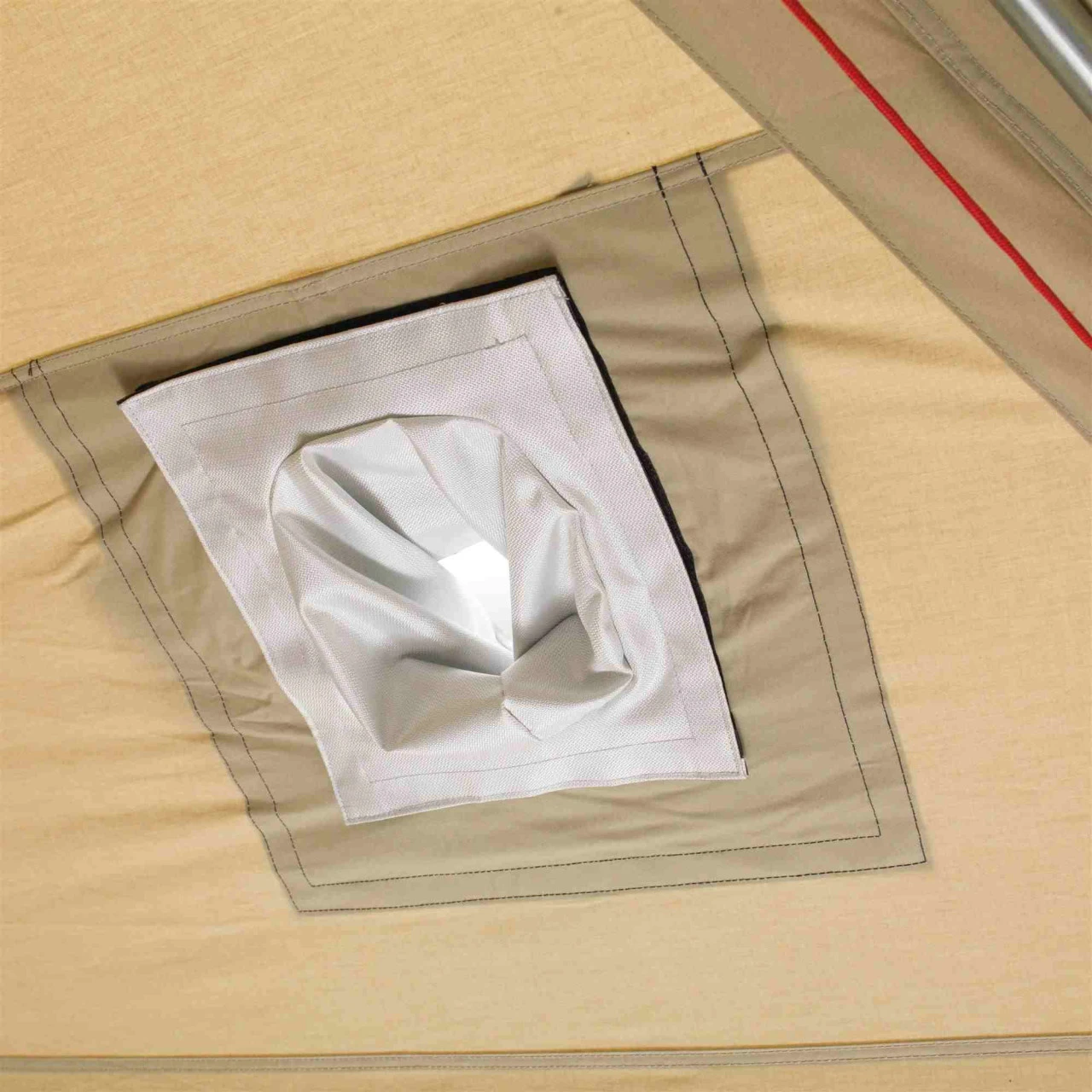 - Boden- und Schornsteinöffnung für einen optionalen erhältlichen Zeltofen