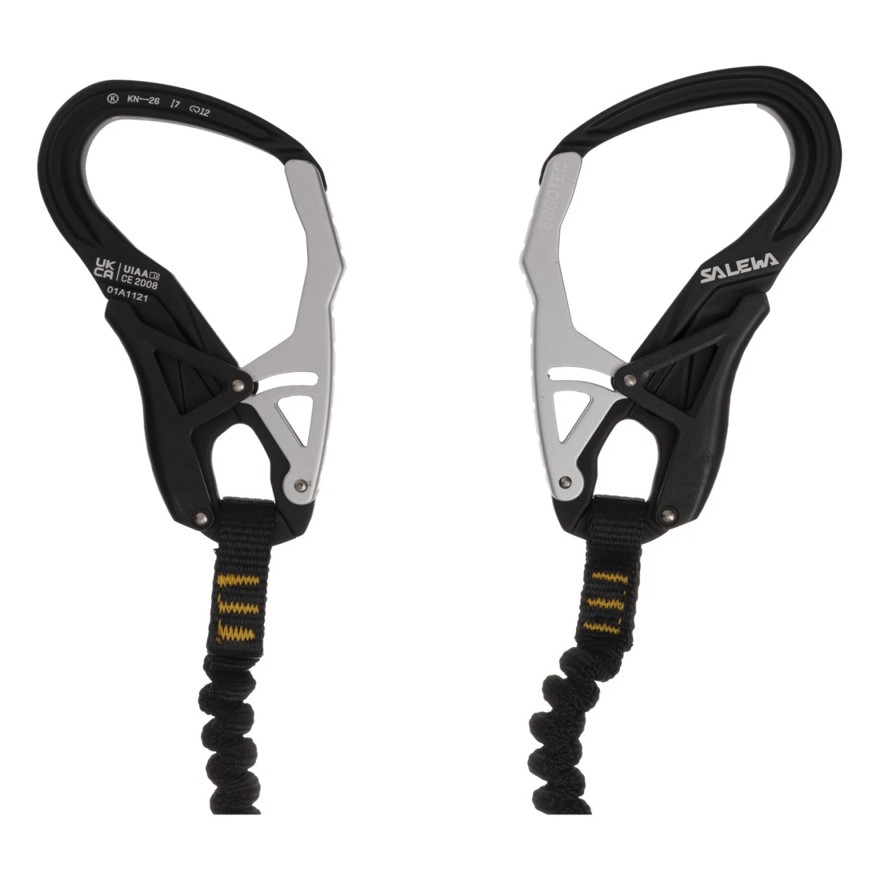 Das Ergo Core von Salewa ist ein kompaktes Klettersteigset, welches mit praktischen Features ausgestattet ist. Zu diesen Eigenschaften gehören die ergonomisch geformten Karabiner und die elastischen Sicherungsarme aus abriebfestem Gewebe, die für ein hohes Maß an Sicherheit sorgen. Die Karabiner liegen angenehm in der Hand und sind auch für Kinderhände gut geeignet. Außerdem sorgt die ergonomische Form der Karabiner für eine Kraftersparnis von bis zu 30 Prozent. Der Bandfalldämpfer sorgt dafür, dass im Falle eines Sturzes, dieser Sturz gedämpft wird und ist zudem mit einer praktischen Rastschlaufe ausgestattet.