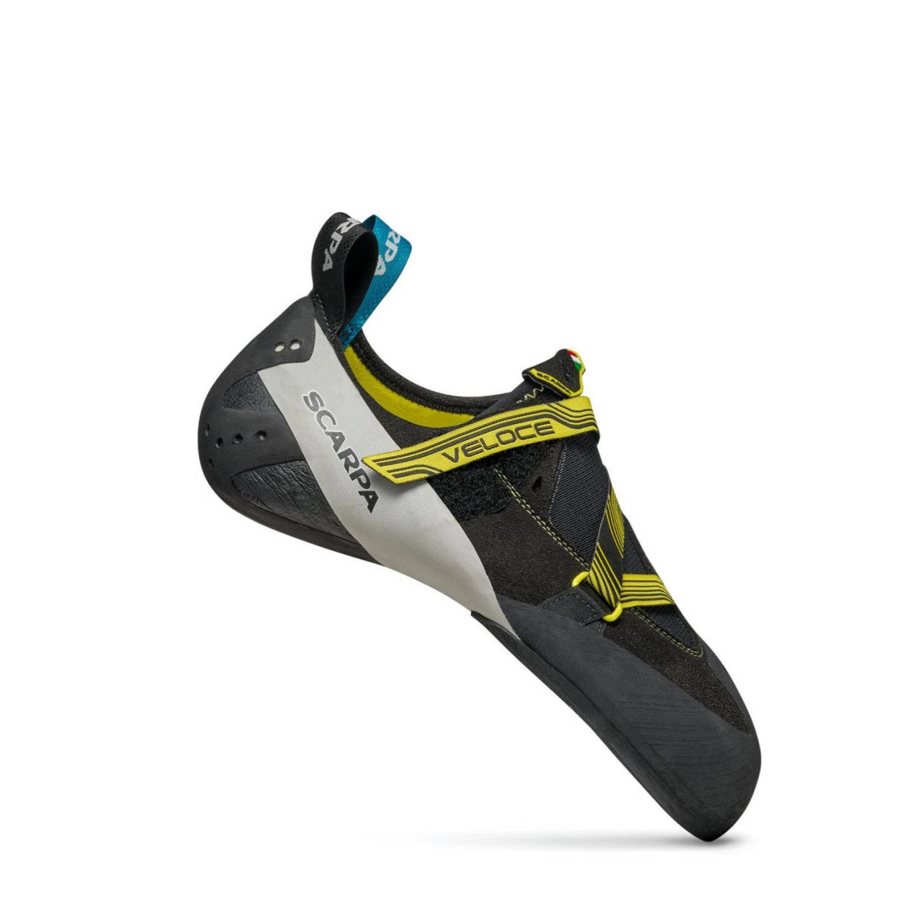 Der Scarpa Veloce Men Herren Kletterschuh für Männer spielt seine Stärken beim Bouldern voll aus. Er ist genau das Richtige für Einsteiger. Ein neues Gummi sorgt für beste Haftung. Die beiden gegenläufigen Velcroverschlüsse verhindern ein Drehen des Schuhs um den Fuß. Der Allrounder eignet sich auch für draußen.