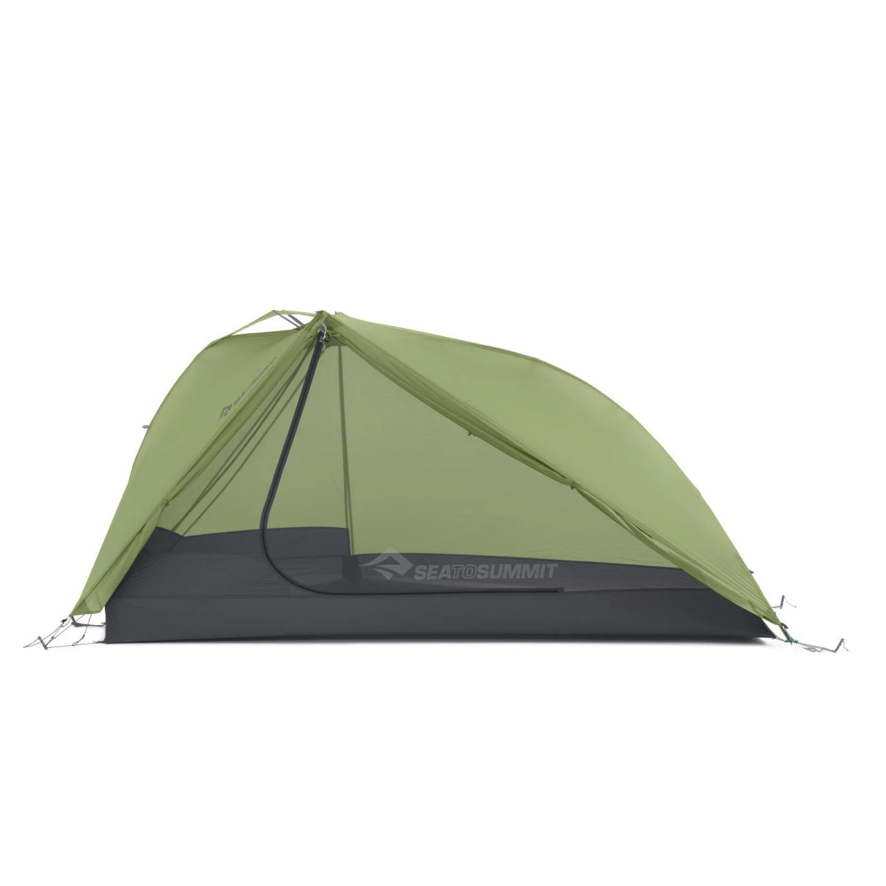 Das Alto TR1 Trekkingzelt von Sea to Summit bietet durch die neue Tension Ridge Architektur viel Platz im Zelt. Bei dieser neuen Technik sind die beiden Querstangen am höchsten Punkt des Innenzeltes nach oben gebogen, nicht wie bei anderen Zelten nach unten. Dadurch wird mehr Platz im Zelt gewonnen und es ist am höchsten Punkt 108 cm hoch. Weiterhin wir die Tür höher, was das Ein- und Aussteigen bequemer macht. Dadurch bekommst du auch in der Apside mehr Platz als Stauraum für deine Ausrüstung oder als Kochstelle.