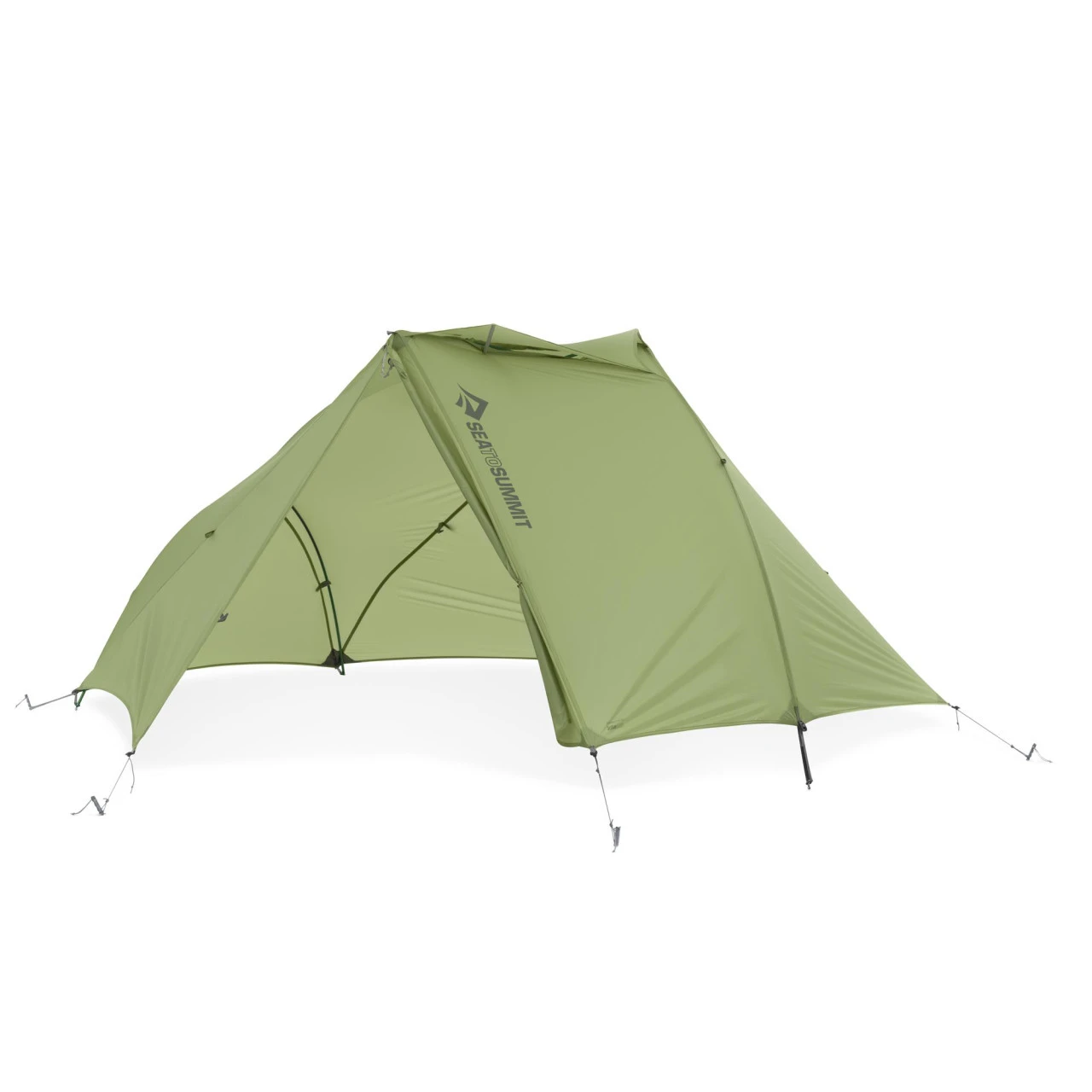 Das Alto TR2 Trekkingzelt von Sea to Summit bietet durch die neue Tension Ridge Architektur viel Platz im Zelt. Bei dieser neuen Technik sind die beiden Querstangen am höchsten Punkt des Innenzeltes nach oben gebogen, nicht wie bei anderen Zelten nach unten. Dadurch wird mehr Platz im Zelt gewonnen und es ist am höchsten Punkt 108 cm hoch. Weiterhin werden die Türen höher, was das Ein- und Aussteigen bequemer macht. Eine hohe Flexibilität gewährleisten die beiden Eingänge mit den davorliegenden Apsiden. Auch hier hast du mehr Platz für deine Ausrüstung oder als Kochstelle.