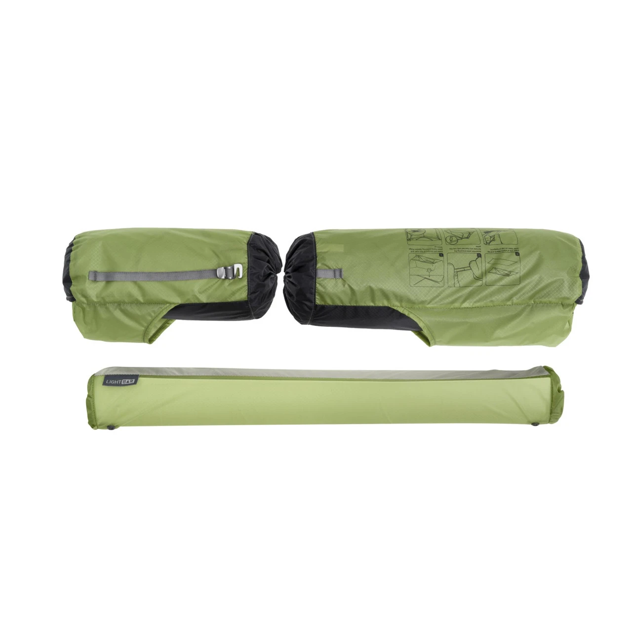 Das geringe Gewicht von nur 1,34 kg wird dadurch erreicht, dass nur sehr leichte Materialien wie DAC Featherlite Aluminium Gestänge und 15D Nylon Gewebe verwendet werden.