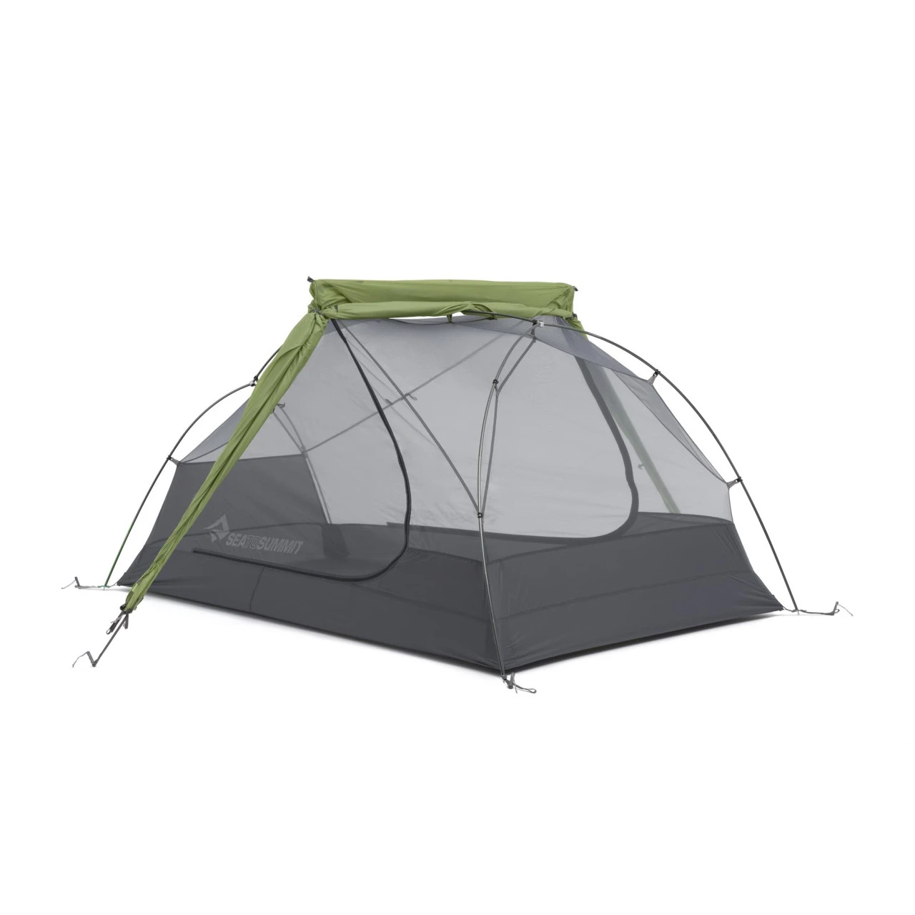 Das DAC Featherlite Aluminiumgestänge ist komplett verbunden, so dass das Zusammenstecken intuitiv fast von allein geht. Die farblich markierten Stangenenden werden in die dafür vorgesehenen Enden am Zelt gesteckt. Sea to Summit hat die Quick-Connect Pole Feets noch weiter verfeinert. Gefräste Aluminium Clips machen das Befestigen des Außenzeltes schnell und einhändig möglich. Die Aluminium Clips sind zudem noch deutlich haltbarer als herkömmliche Kunststoffschnallen.