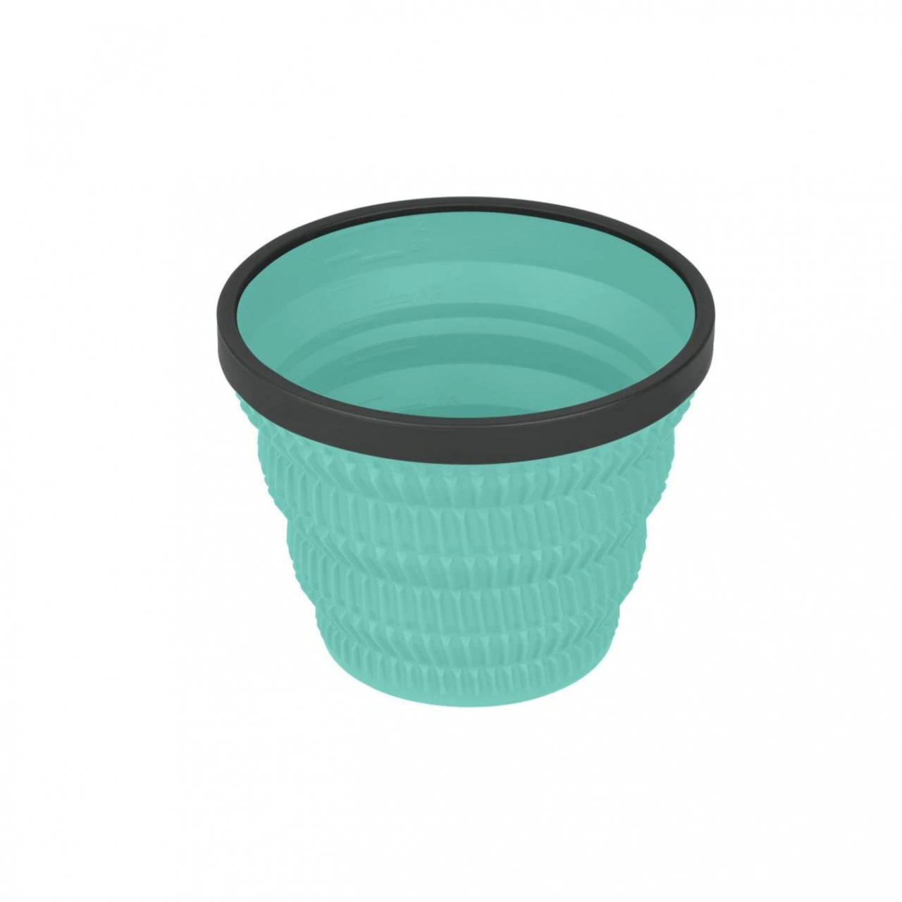 Die Sea to summit X-Mug Cool Grip ist eine flexible und faltbare Tasse, die dank der innovativen Cool-Grip-Konstruktion deine Finger vor der Hitze des Inhaltes schützt. Sein starrer Rand sorg dafür, dass der Becher stabil bleibt. Mit ihren 430 ml Inhalt hat er die perfekte Größe für einen Kaffee oder Tee am Ende einer langen Wanderung oder beim Campen.