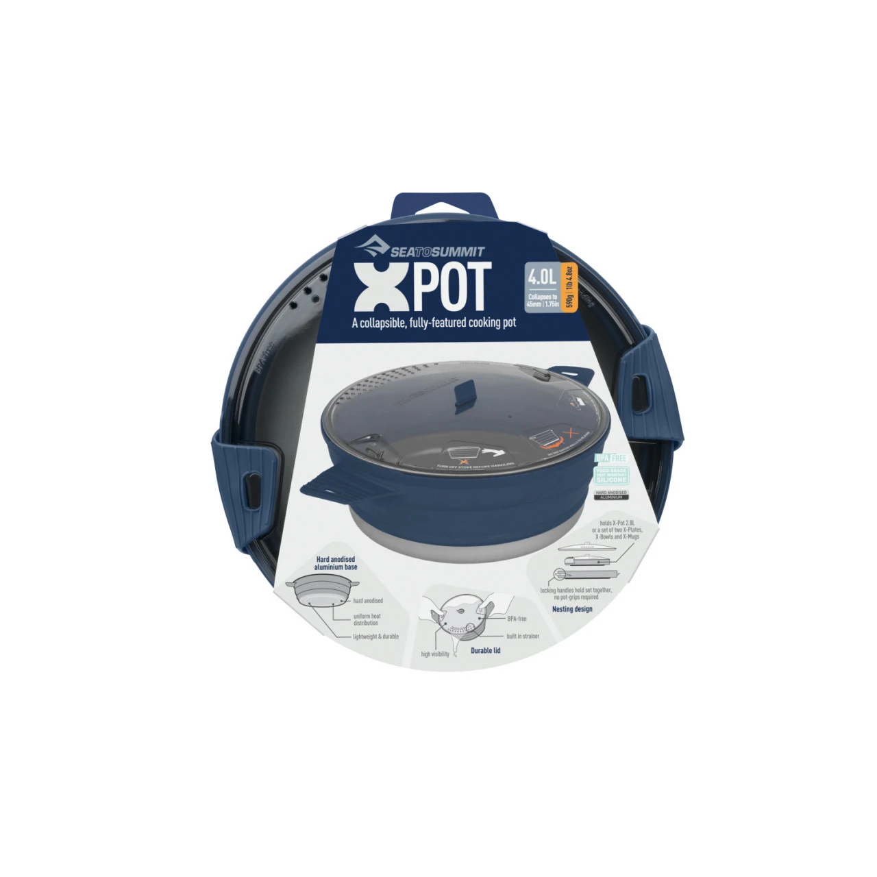 Wer sein Geschirr kompakt verstauen möchte, für den ist der zusammenfaltbare sea to summit X-Pot 4.0 L Kochtopf genau das Richtige. Der Boden aus hartanodisiertem Aluminium sorgt dafür, dass das Wasser schnell zum Kochen gebracht wird. Zu den Ausstattungsmerkmalen gehören faltbare Silikonwände, Deckel mit integriertem Sieb und klappbare Griffe.