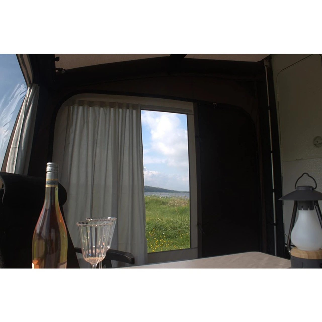 Das Telta Life 330 Wohnwagen- und Wohnmobilvorzelt verbindet klassisches Design mit innovativer Luftschlauch-Technologie. Das Vordach gepaart mit dem Giebeldach ermöglichen dir eine zusätzliche Hochentlüftung und bieten auch Großgewachsenen eine angenehme Raumhöhe für ein komfortables Betreten des Vorzelts. Das große Frontelement kannst du durch vielseitige Reißverschlüsse in verschiedene Richtungen öffnen und hast somit viele Optionen für Belüftung und die perfekte Aussicht. Komplett hochrollen, zur Seite rollen, vollständig herausnehmen – alles kein Problem mit dem Telta Life 330. Erhältlich in 3,30m und 3,90m Breite und mit einer Tiefe von 2,75m bietet das Telta Life viel Platz für deine ganze Familie. Die leicht getönten Scheiben sorgen für ungestörten Blick nach draußen bei gleichzeitigem Schutz vor Blicken von außen. Die innovative Luftschlauch-Technik ermöglichen es dir, den mittleren Schlauch auch ohne Abspannung zu fixieren. Dadurch werden unnötige Stolperfallen beim Telta Life 330 Wohnwagen- und Wohnmobilvorzelt vermieden.