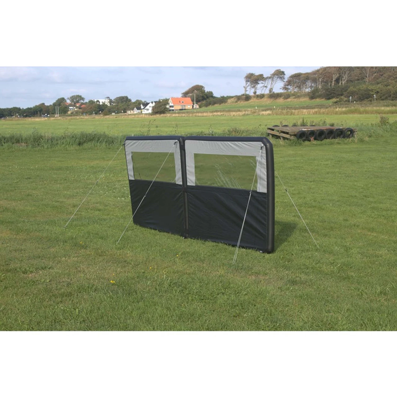 Der aufblasbare Windschutz Telta Rock 2besteht aus jeweils 2 Elementen mit einer Breite von 3 m. Die beiden Elemente können in einem Winkel von 90 bis 180 Grad aufgestellt werden. Der besondere Clou: Durch den Reißverschluss an den Enden des Windschutzes können beliebig viele Segmente miteinander verbunden und der Windschutz so an die jeweiligen Bedürfnisse angepasst werden.