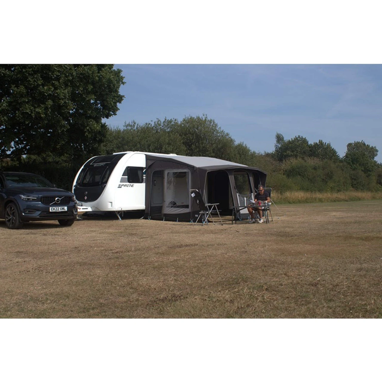 Das Telta Soul 390 Wohnwagen- und Wohnmobilvorzelt ist das perfekte Luftvorzelt für alle, die auf der Suche nach einem funktionellen Vorzelt mit toller Optik sind. Mit seinem leicht getönten Panoramafenster bietet es dir eine großartige Aussicht. Du kannst es je nach deinem individuellen Wunsch herausnehmen, aufrollen oder in Panorama-Stellung bringen. Das Vorzelt bietet dir viel Platz und eine äußerst großzügige Kopffreiheit. Der Auf- und Abbau des Telta Soul 390 ist einfach und schnell und dank seiner Größe passt es perfekt zu Wohnmobilen mit 400cm und 500cm Markisen. Das Telta Soul ist in zwei verschiedenen Breiten erhältlich – 3,90m und 4,90m – und bietet eine gigantische Tiefe von 3,25m in der Spitze. Das Telta Soul 390 Wohnwagen- und Wohnmobilvorzelt hat eine dynamische, leicht gebogene Front, die ihm eine besondere Optik verleiht. Das kleine Vordach schützt die Front bei schlechtem Wetter und ermöglicht dir das Lüften auch bei Regen. Mit einem Gewicht von nur 35kg ist das Vorzelt leicht und einfach zu transportieren. Das Telta Soul 390 bietet dir zwar ohnehin schon viel Platz, kann aber auch zusätzlich mit dem Telta Anbau auf beiden Seiten erweitert werden.