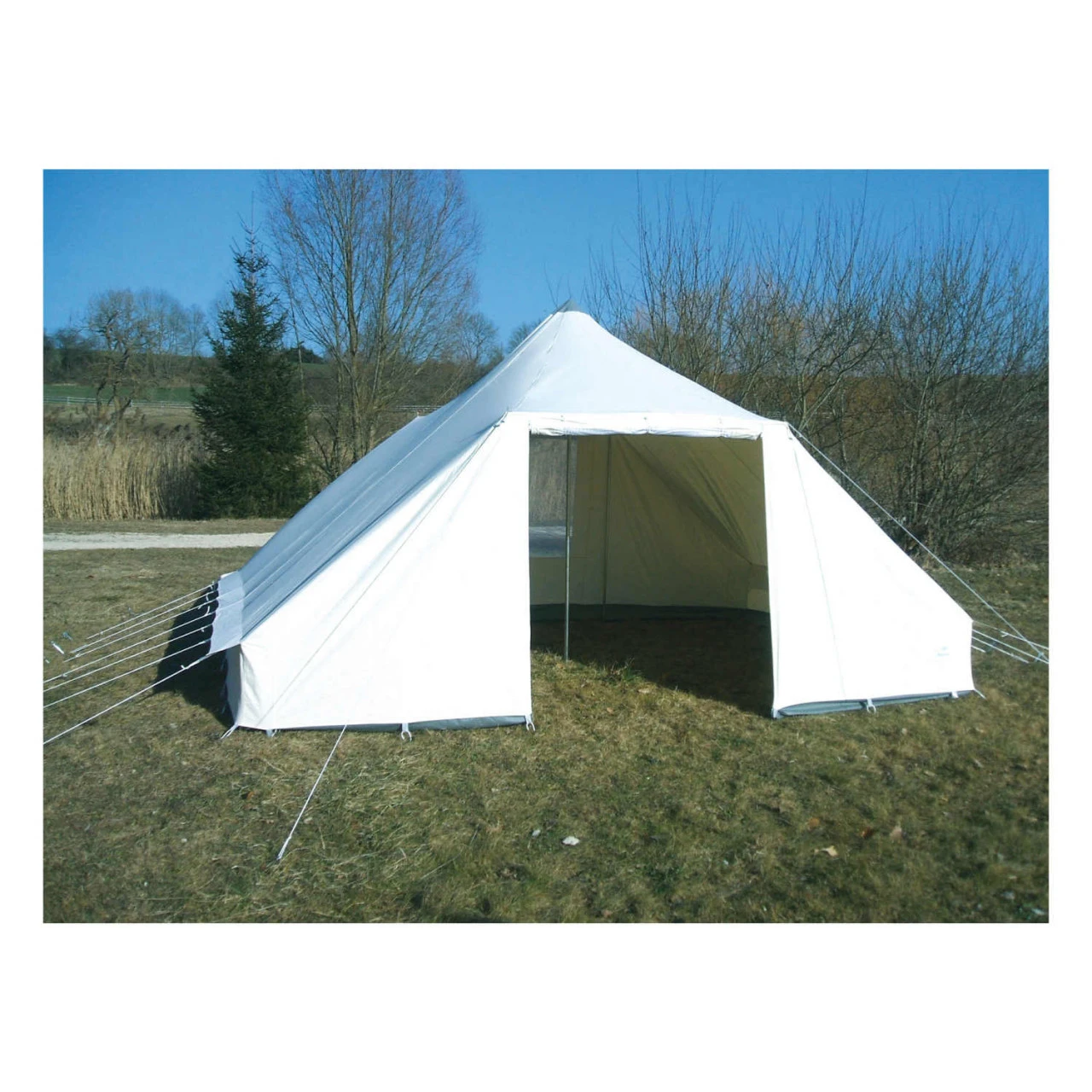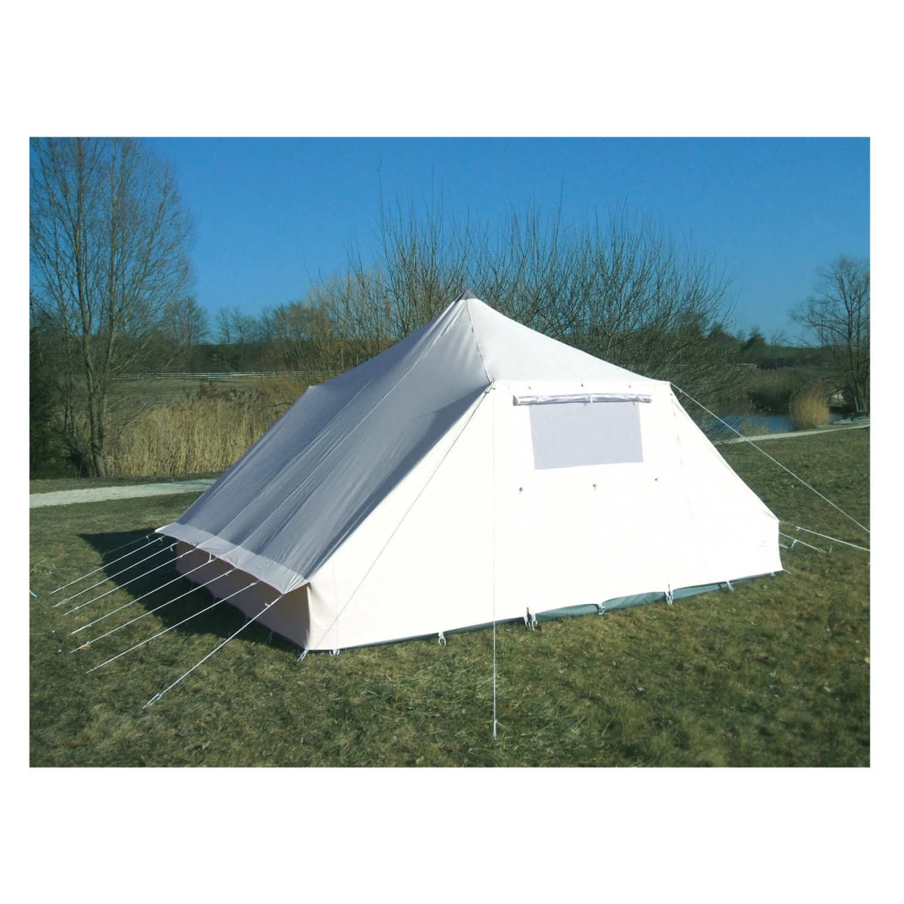 Das Tortuga Tuareg Airtex Pyramidenzelt ist eine komfortable Unterkunft für bis zu zehn Personen. Die Grundfläche wird durch die rechteckige Form perfekt ausgenutzt. Der 170 cm hohe Eingang mit Reißverschlüssen erlaubt ein bequemes Betreten des Zeltes. Die Mittelhöhe von 260 cm sorgt für ein komfortables Raumgefühl. Das Polyestergewebe der Zelthaut wurde mit einer einseitigen mikroporösen Acrylbeschichtung ausgestattet, weshalb Feuchtigkeit effektiv abgewiesen wird. Die Ventilationshauben im Dach und die Tülllüftungen unter den Traufkanten sorgen für das angenehme Zeltklima. Das Stahlgestänge gewährleistet die Stabilität des Gruppenzeltes. Das Tortuga Tuareg Airtex Pyramidenzelt eignet sich optimal für mehrtägige Unternehmungen in den klassischen drei Jahreszeiten.